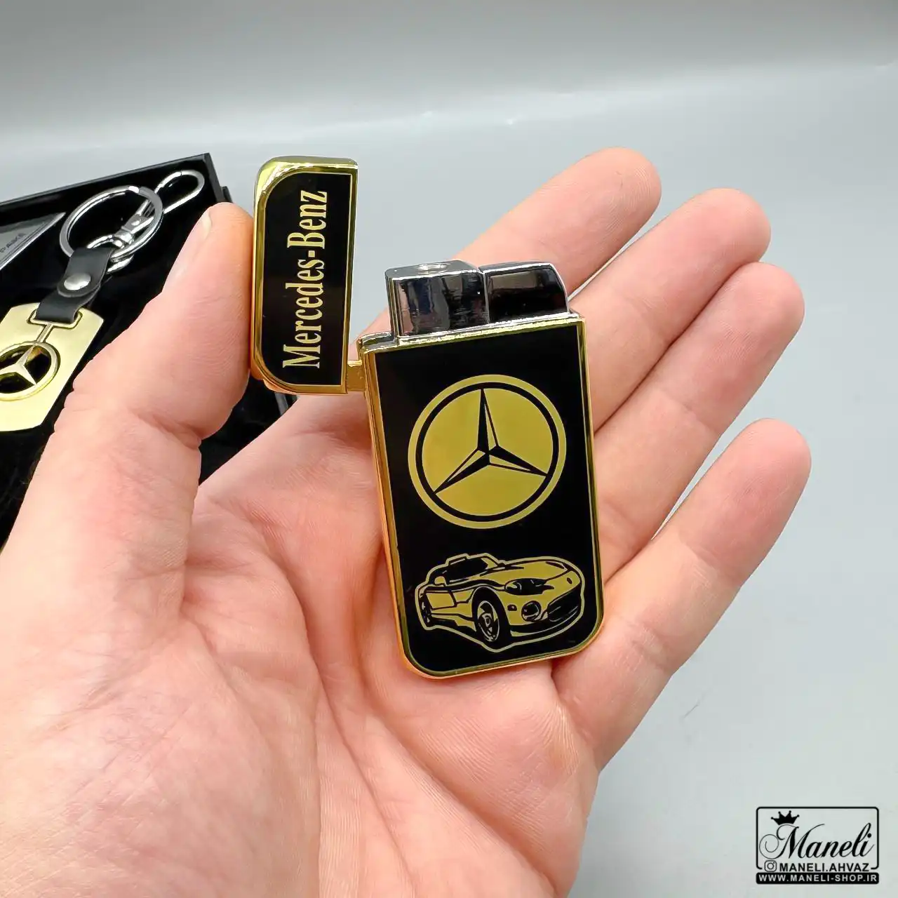 ست هدیه ای فندک و جاکلیدی و خودکار طرح بنز طلایی؛ نمادی از شکوه و کارایی در دنیای ست هدیه ای خودکار ، جاکلیدی ، فندک