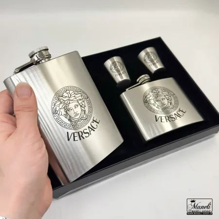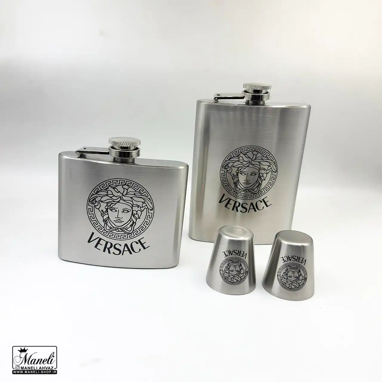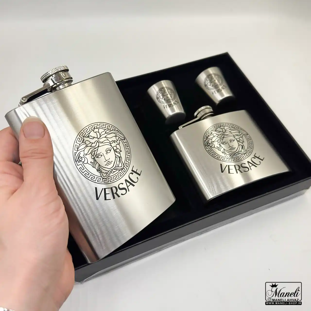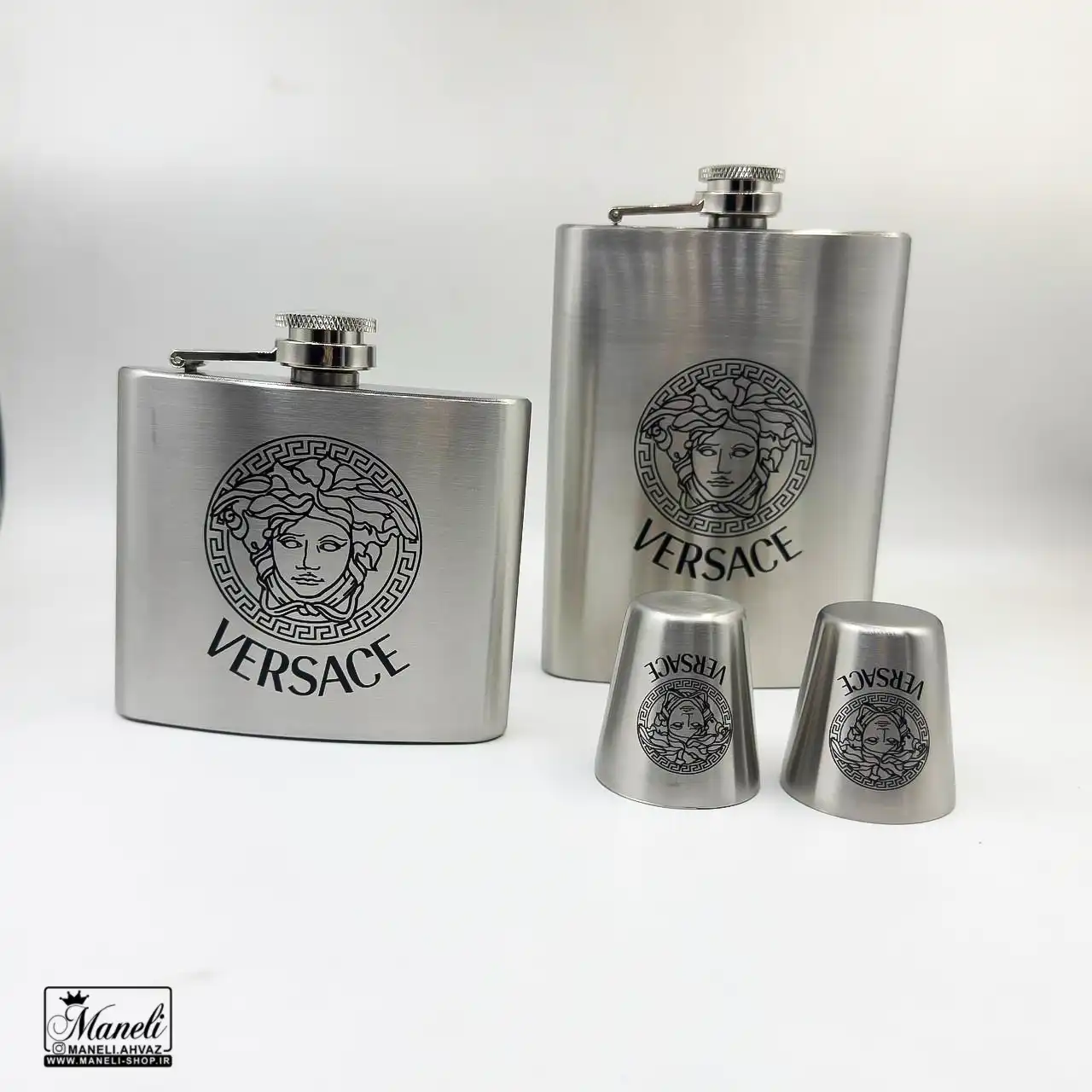 ست هیپ فلاسک بزرگ و کوچک و شات نقره ای طرح ورساچه