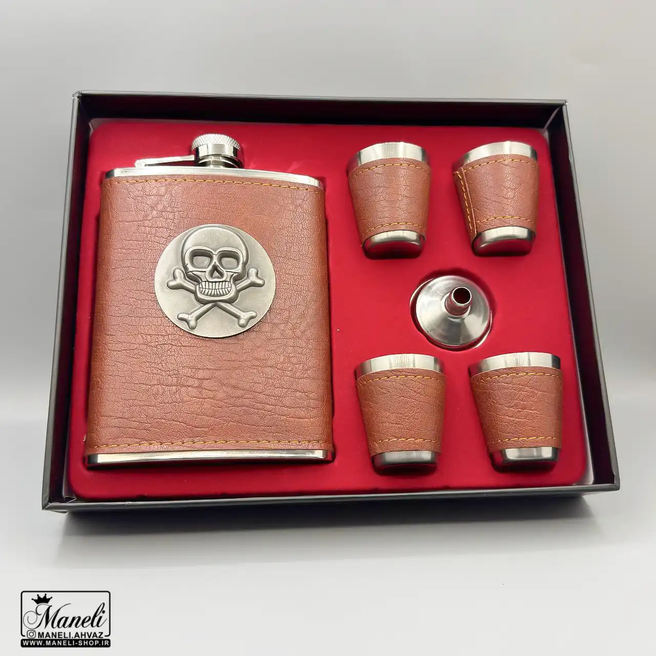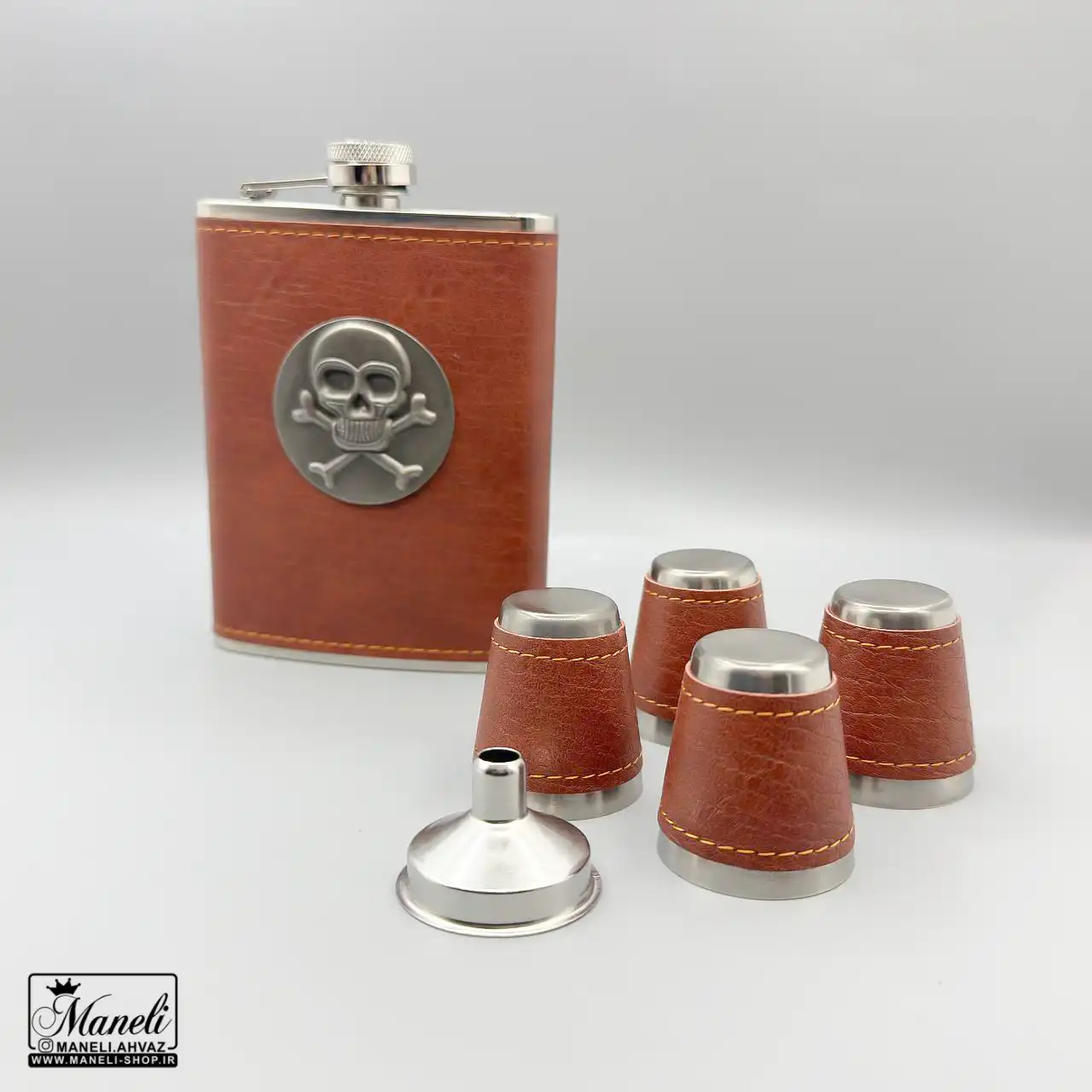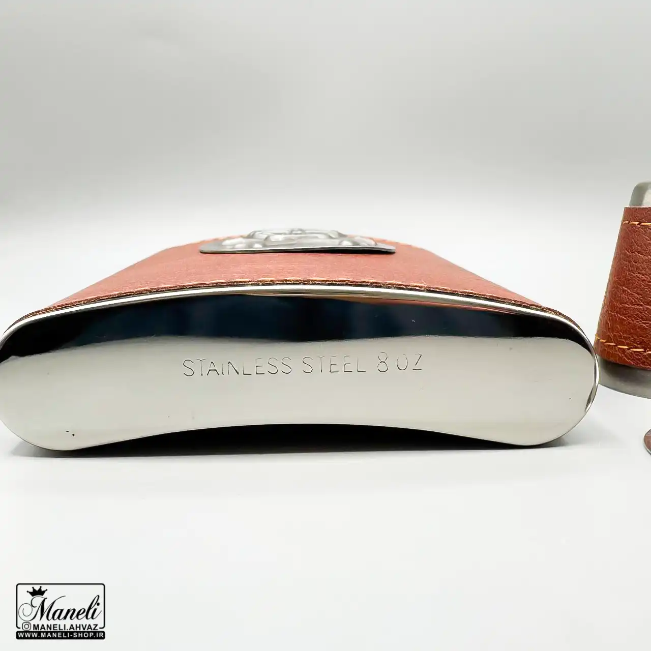 ست هیپ فلاسک و شات روکش چرم قهوه ای 14040815