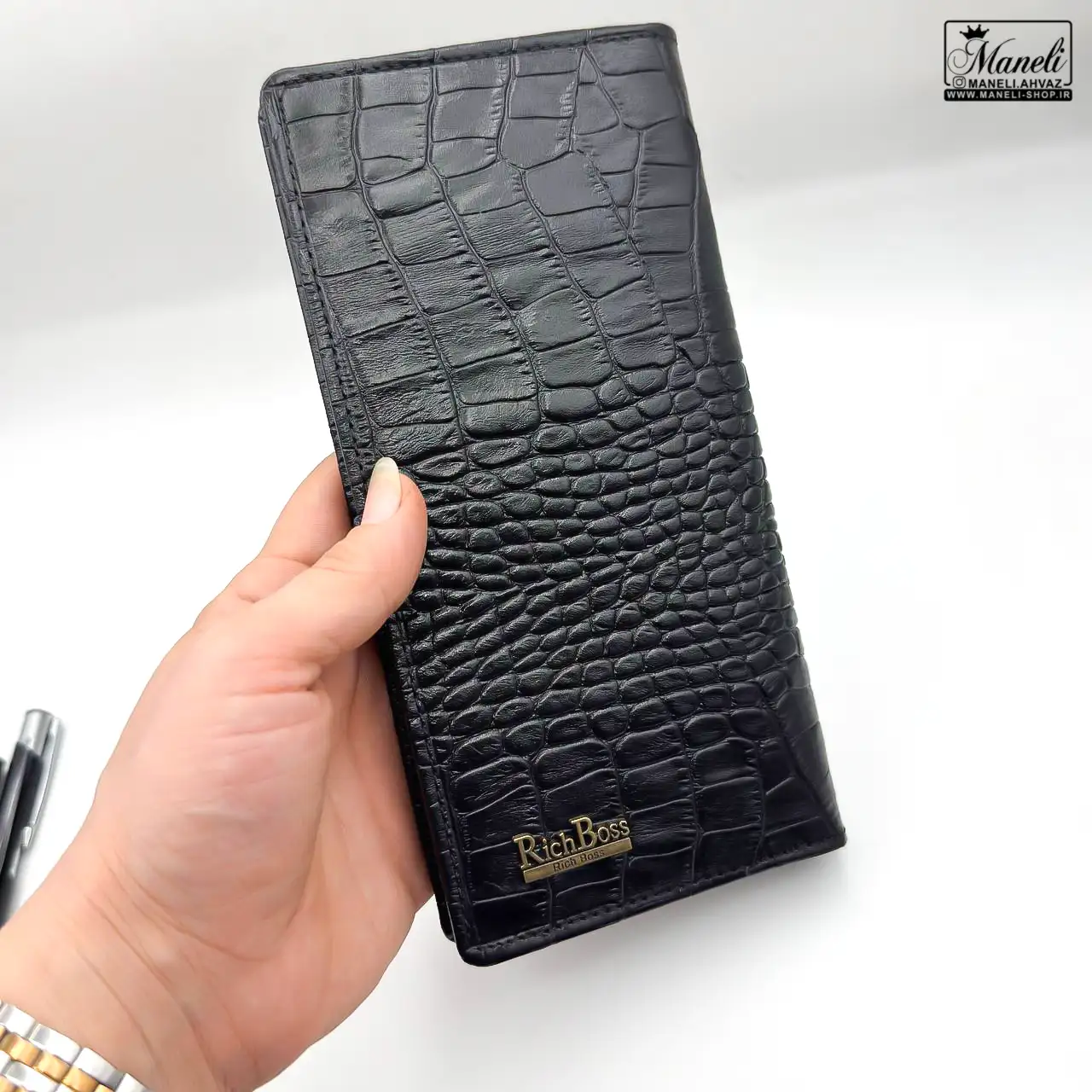 - کیف پول چرمی: با فضاهای متعدد برای اسکناس، کارت و مدارک شناسایی، ترکیبی ایدهآل از کاربردی بودن و زیباییشناسی مینیمال. لمس نرم چرم و دوام فوقالعاده آن، این کیف را به همراهی همیشگی تبدیل میکند.