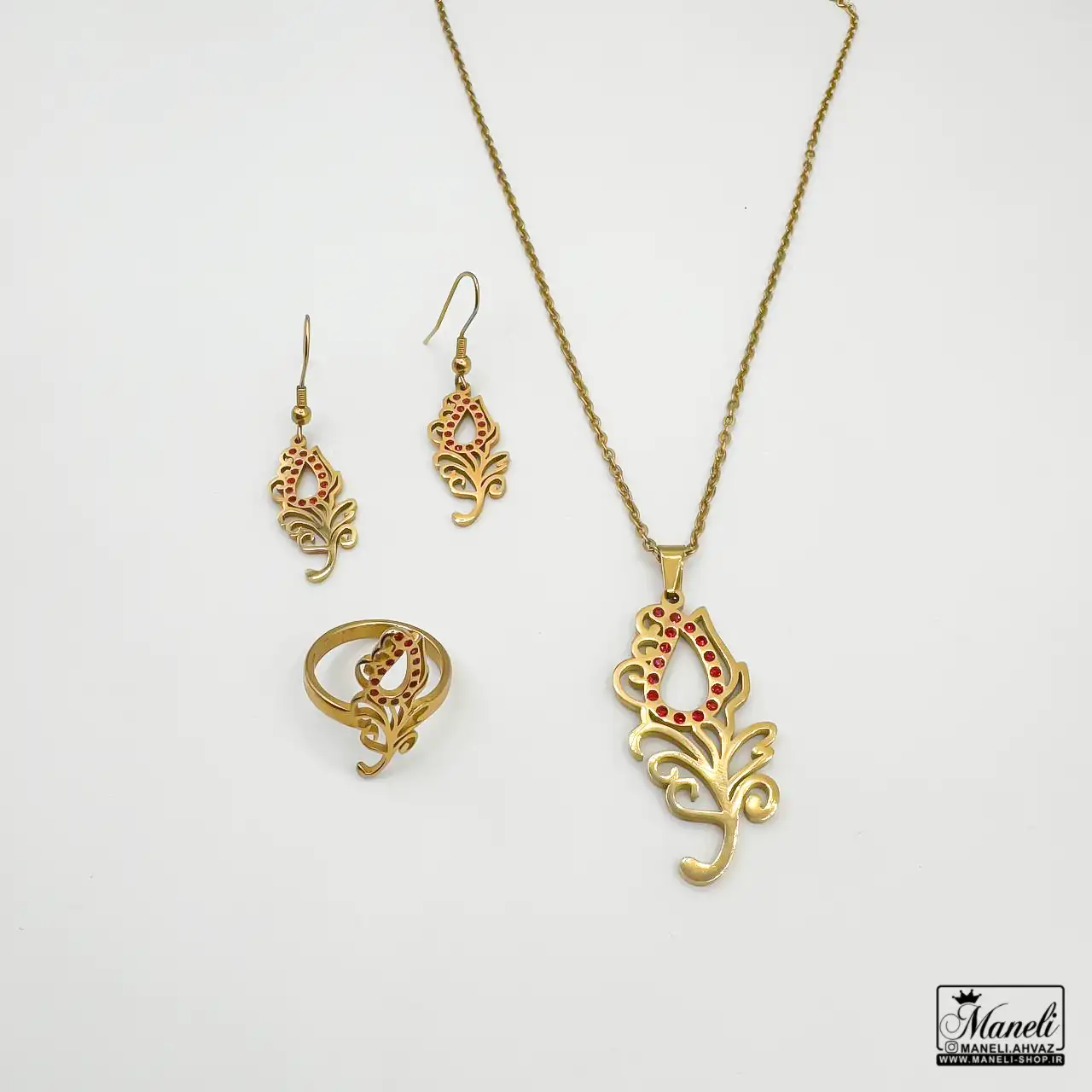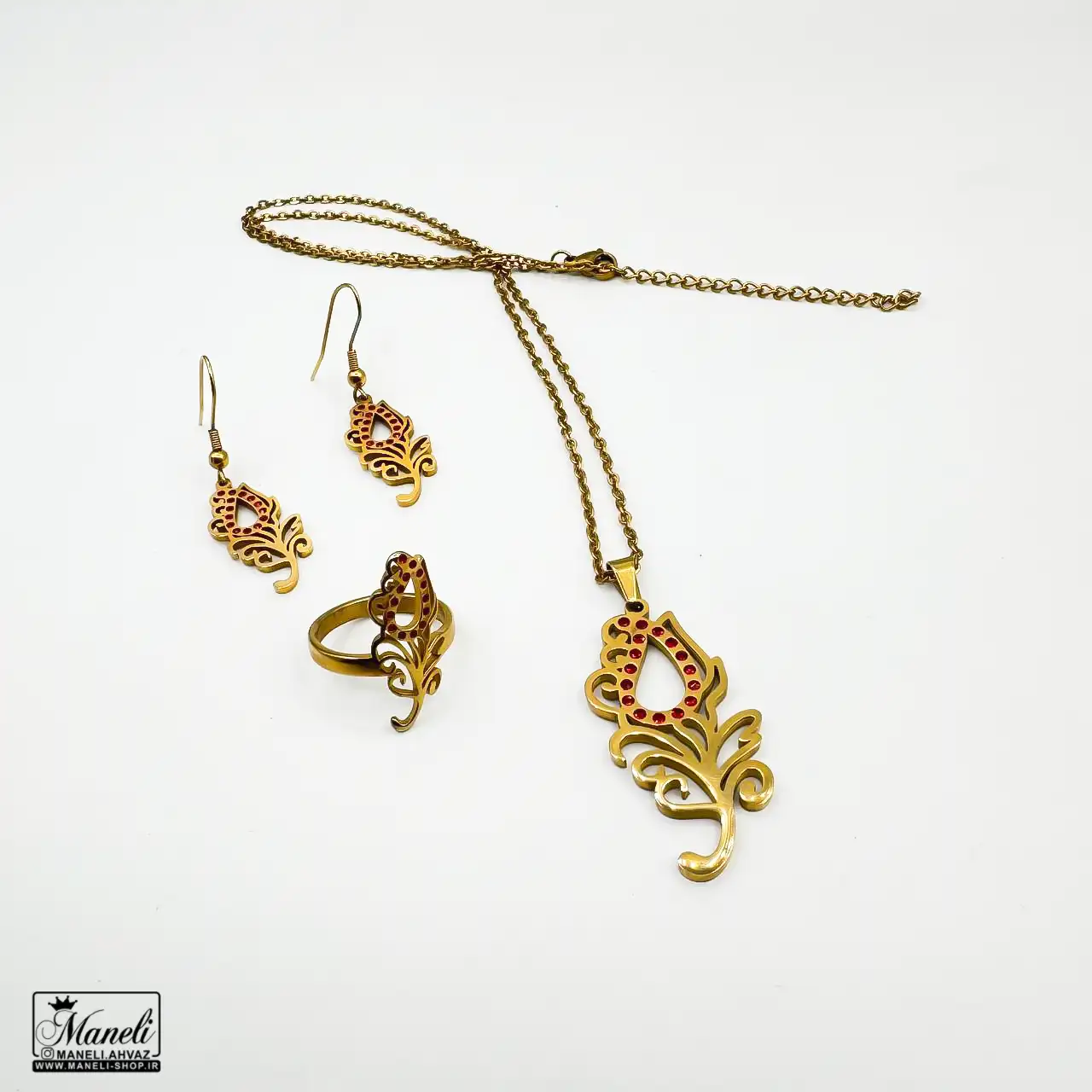 ست گردنبند ، گوشواره و انگشتر استیل رنگ ثابت | آف ویژه 14040957