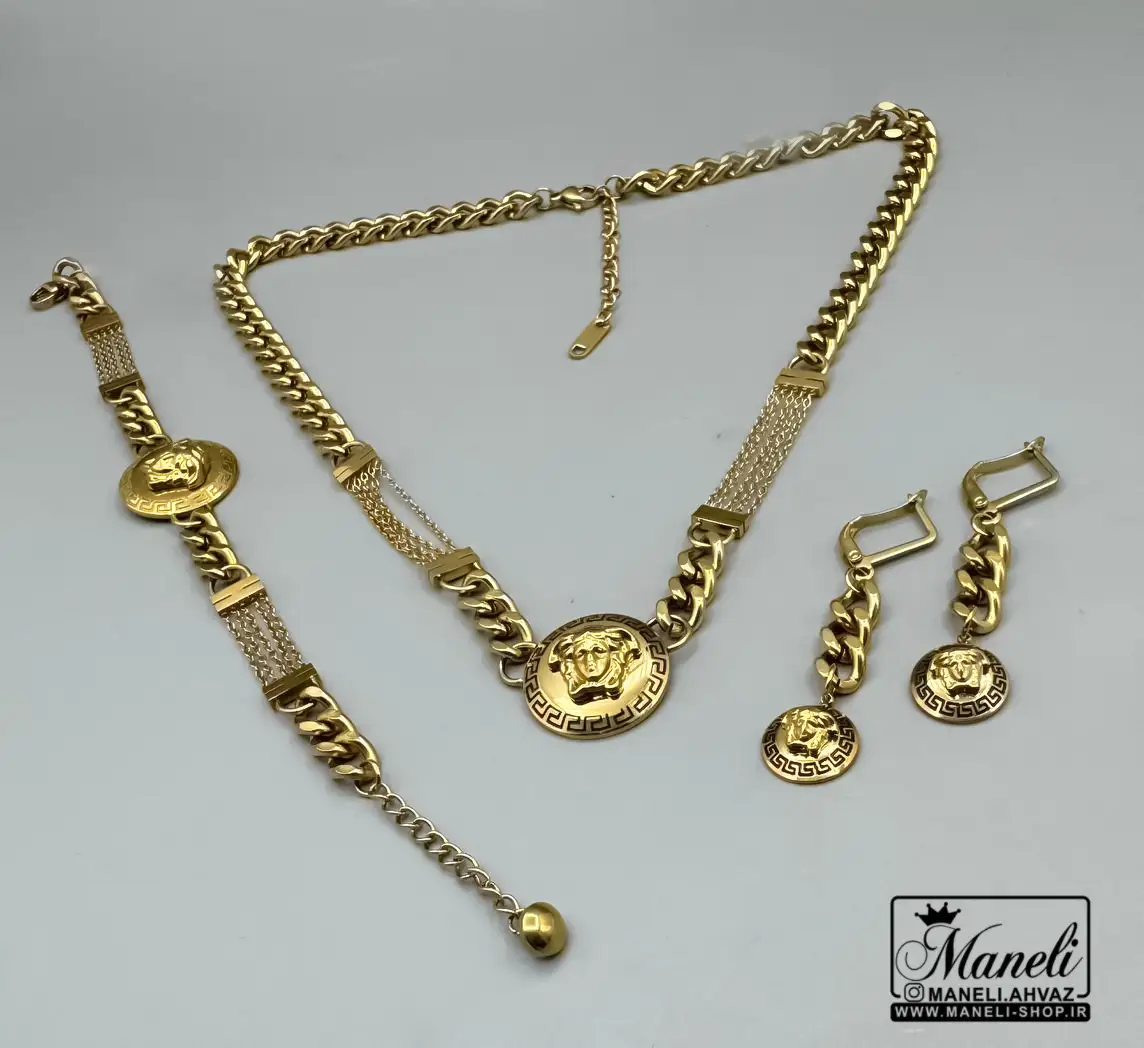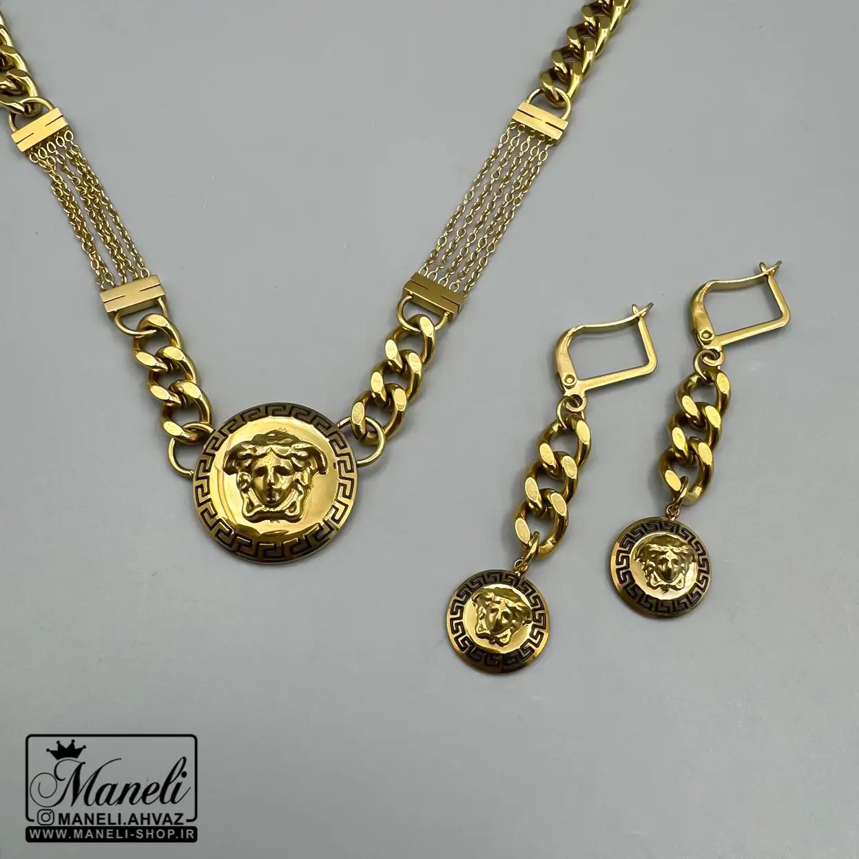 سرویس زنانه طلایی ورساچه رنگ ثابت دقیقا مشابه نمونه طلا|14040926
