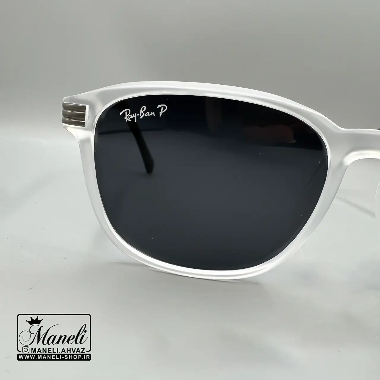 عینک ری بنuv400 وپلاریزه شیشه مشکی قاب سفید |140408149
