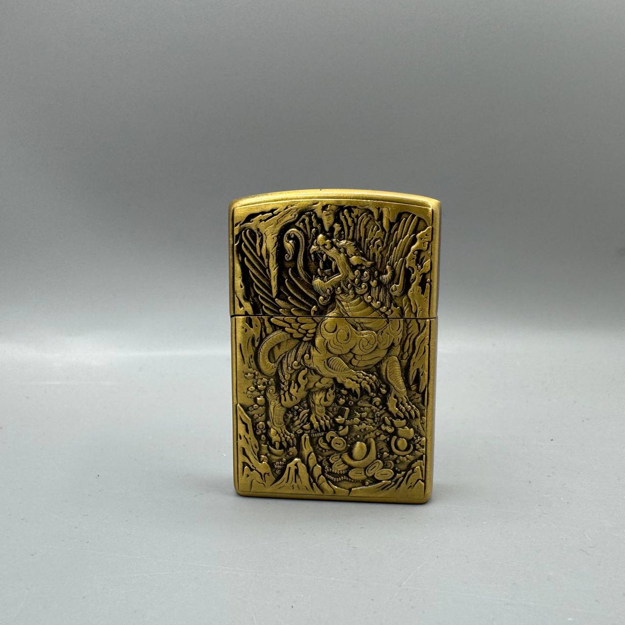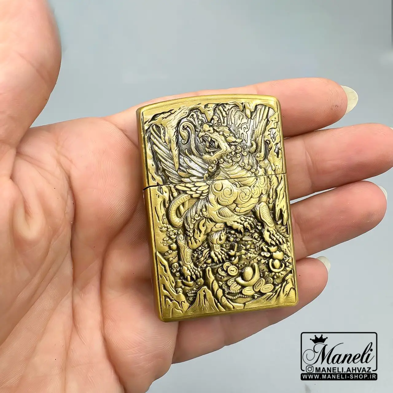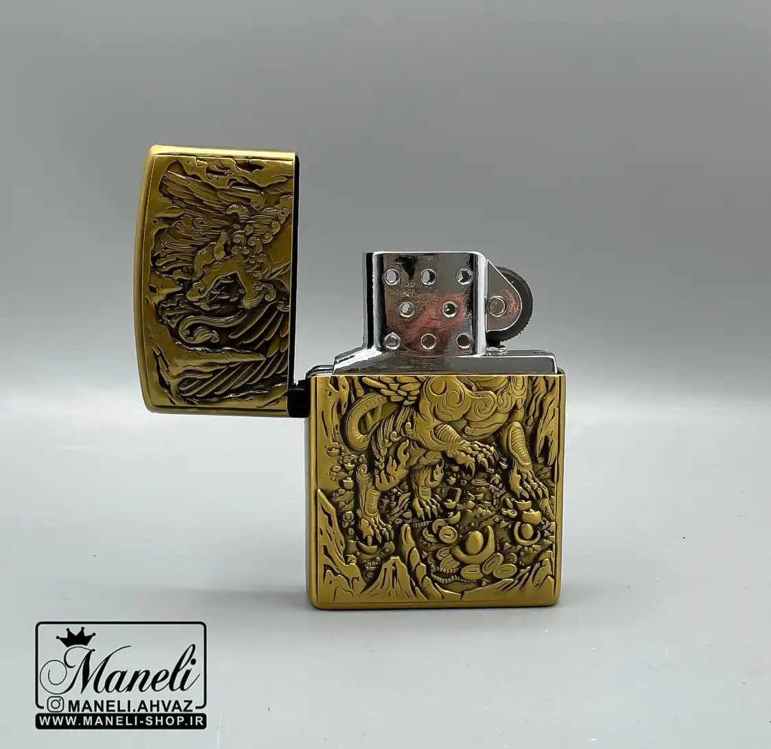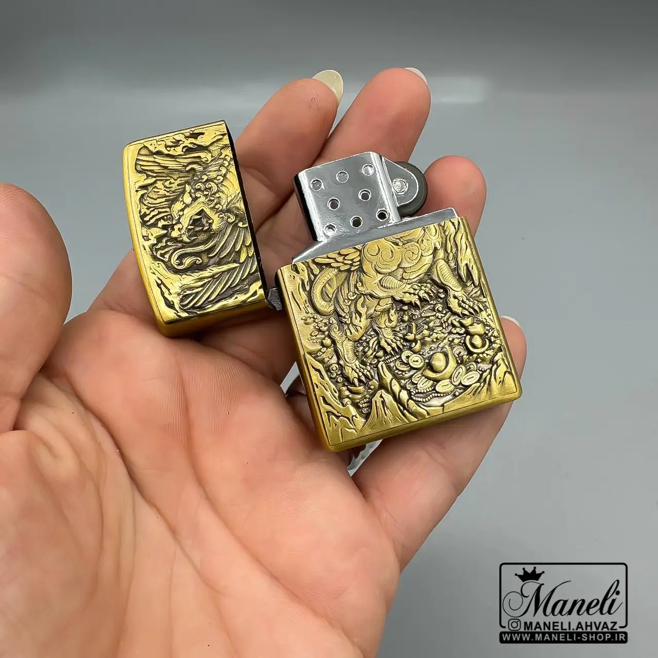 فندک طرح زیپو بنزینی زیتونی مدل اژدها|14040903