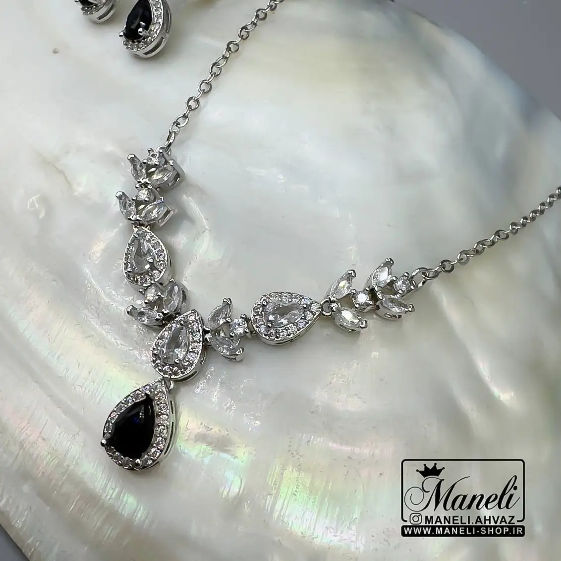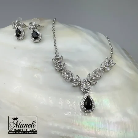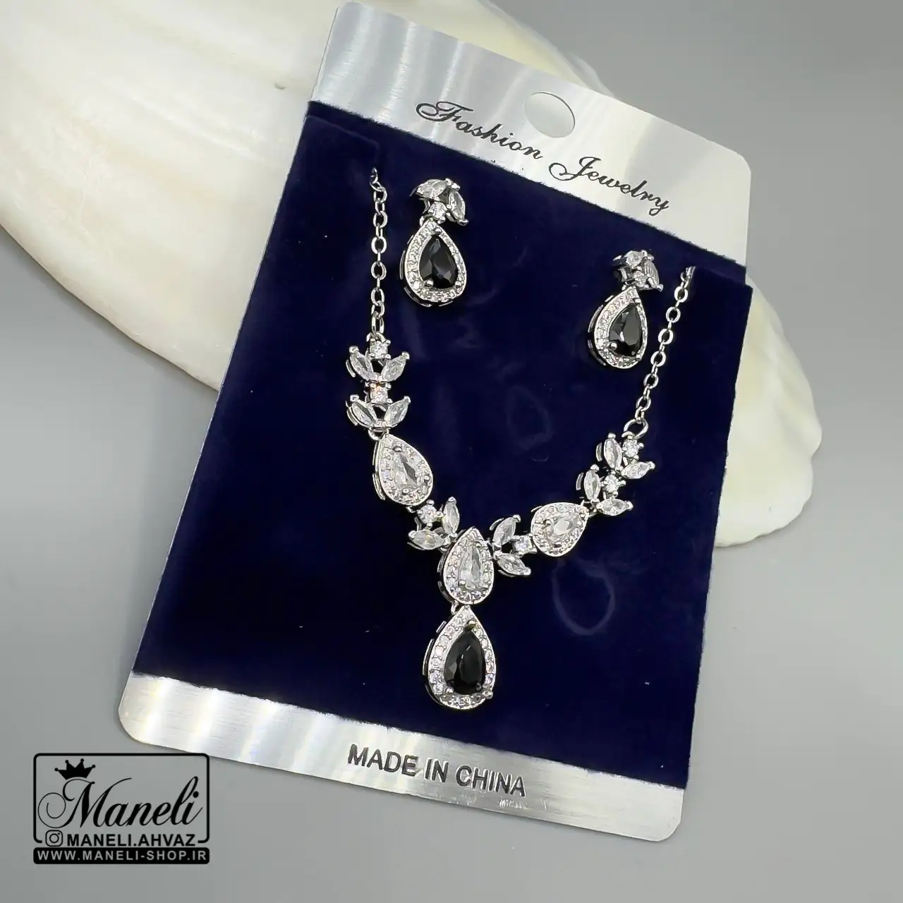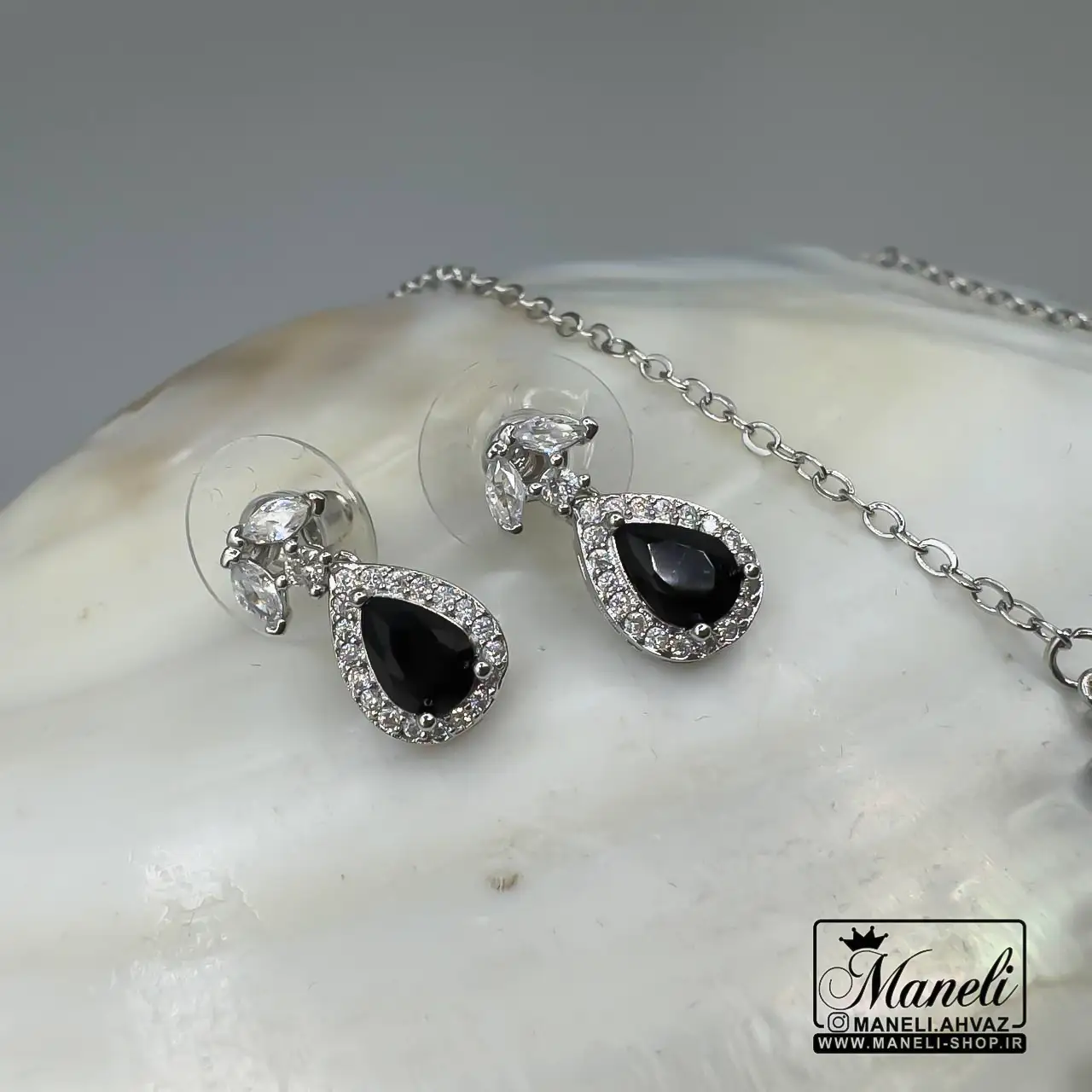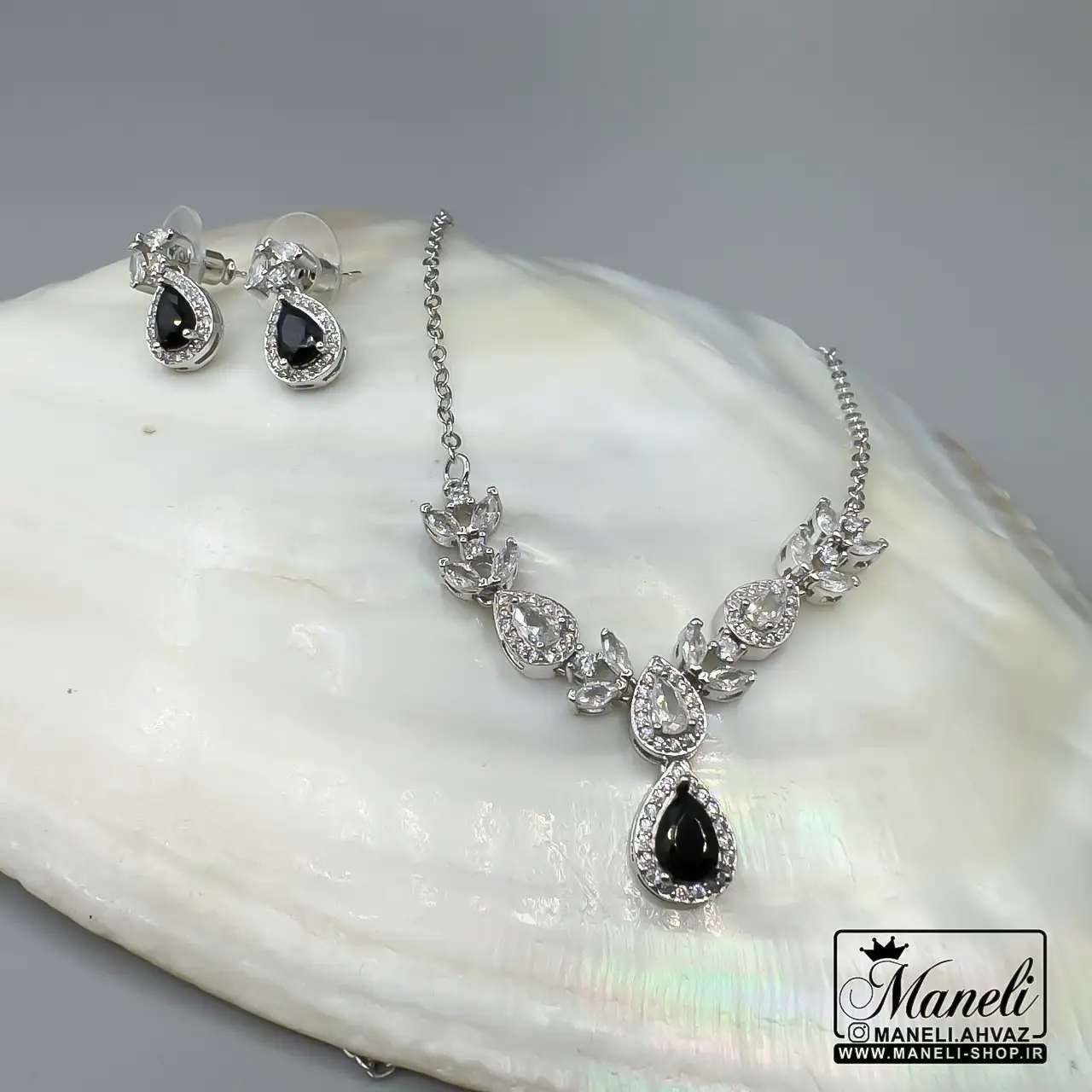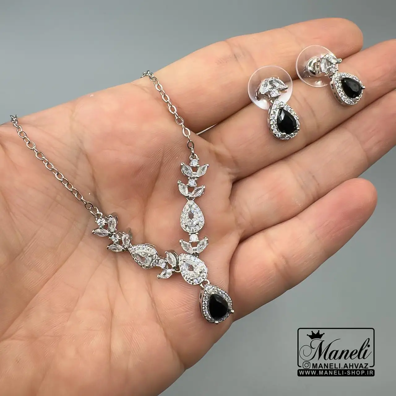 نیم ست جواهری نقره ای با نگین مشکی: درخششی بیپایان برای استایل شما