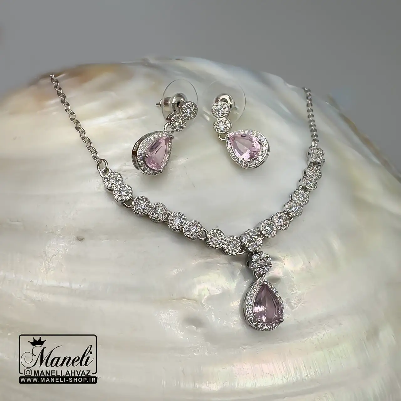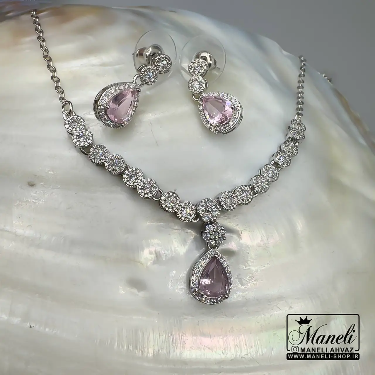 نیم ست جواهری نگین صورتی رنگ ثابت: درخششی ابدی برای استایل بینظیر شما