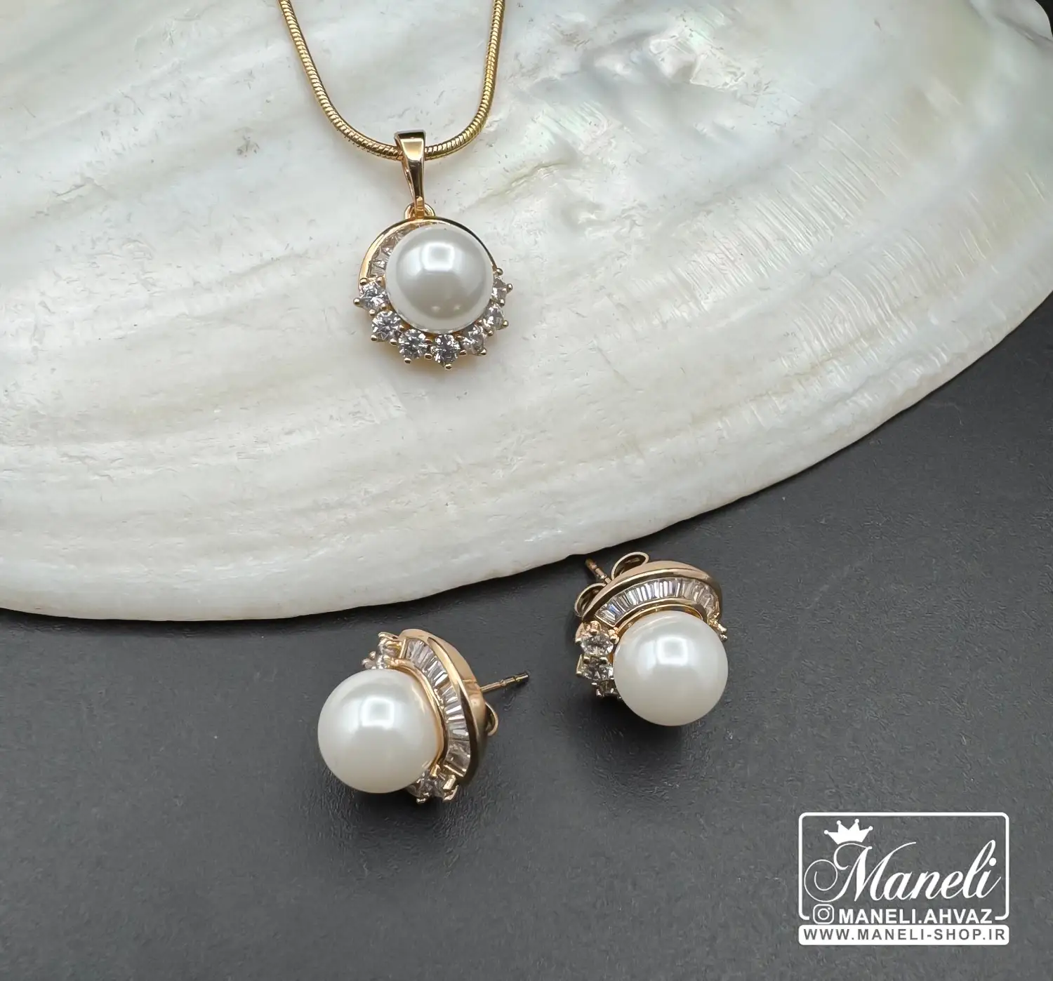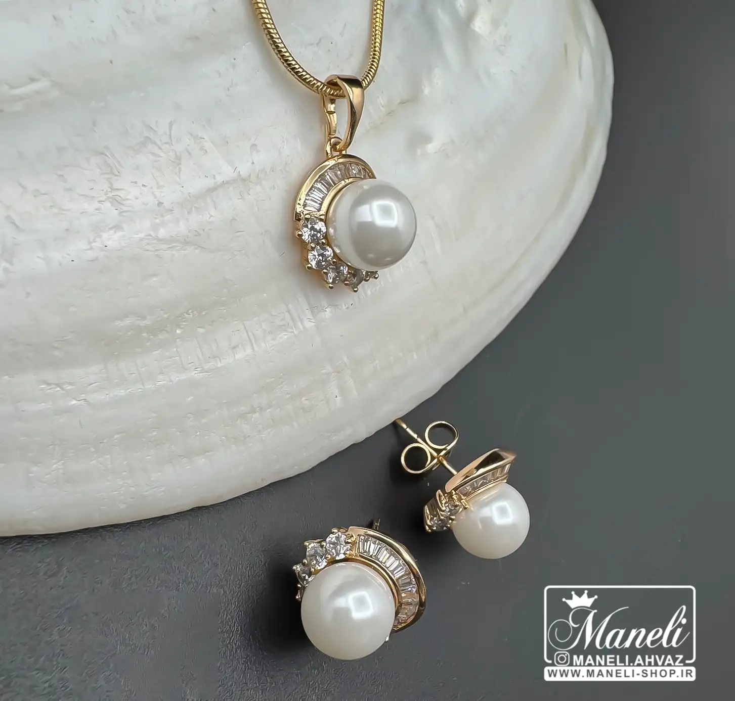 این نیم ست زنانه طلایی با مروارید، شاهکاری از طراحی است که نگاه‌ها را به خود خیره می‌کند. رنگ طلایی درخشان آن، که با دقت و ظرافت بالا آبکاری شده، جلوه‌ای لوکس و گران‌بها به آن می‌بخشد. قلب تپنده این نیم ست، مرواریدهای درخشان و خوش‌تراشی هستند که نمادی از اصالت و زیبایی کلاسیک به شمار می‌روند. در کنار این مرواریدهای چشم‌نواز، نگین‌های باگتی کار شده با دقت فراوان، با درخشش خیره‌کننده خود، بُعدی مدرن و درخشان به این مجموعه اضافه کرده‌اند.