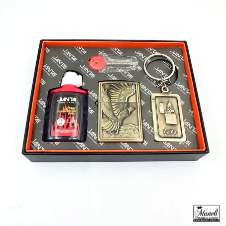 - جاکلیدی فلزی ست با طرح عقاب: یک جاکلیدی زیبا و هماهنگ با فندک که استایلی یکپارچه و جذاب را برای شما فراهم میکند. این جاکلیدی میتواند همراه همیشگی شما باشد.