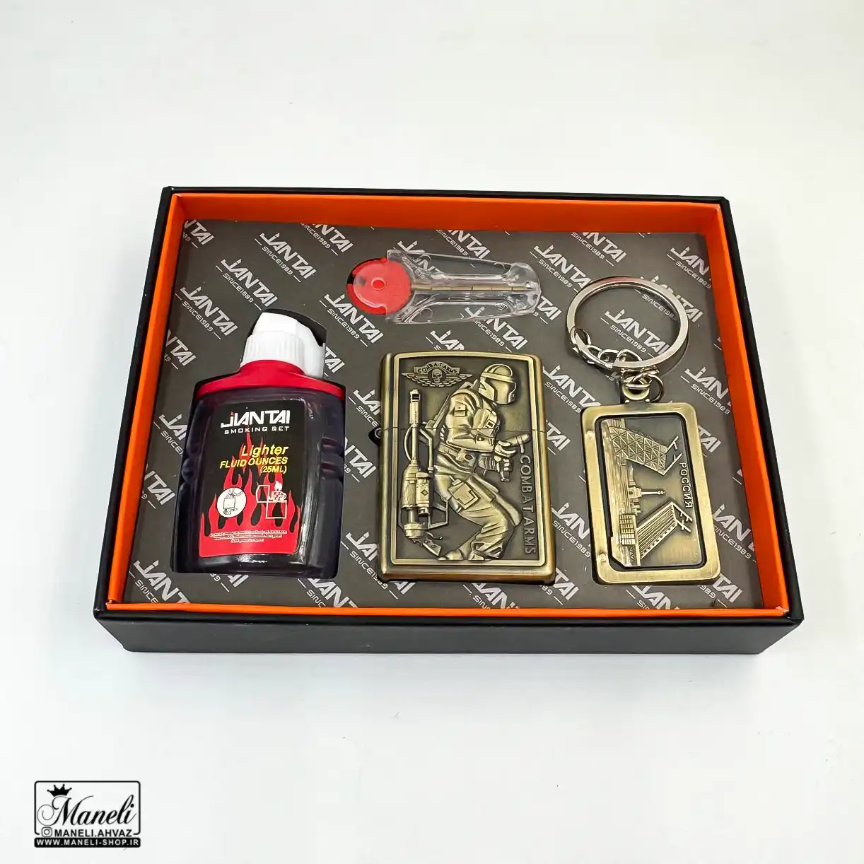 - هدیهای کامل و جامع: این پک شامل یک فندک بنزینی باکیفیت، یک جاکلیدی ست با طرح Combat Arms، یک بطری بنزین مخصوص فندک (۲۵ میلیلیتر) و سنگ اضافه برای فندک است. شما با خرید این پک، هیچ کم و کاستی نخواهید داشت و همه چیز برای استفاده فوری آماده است.