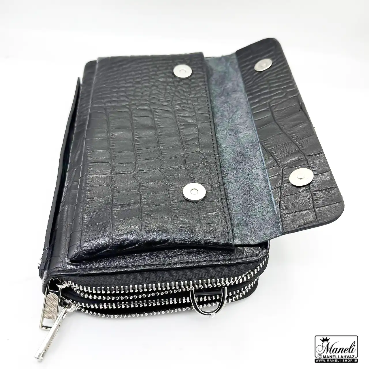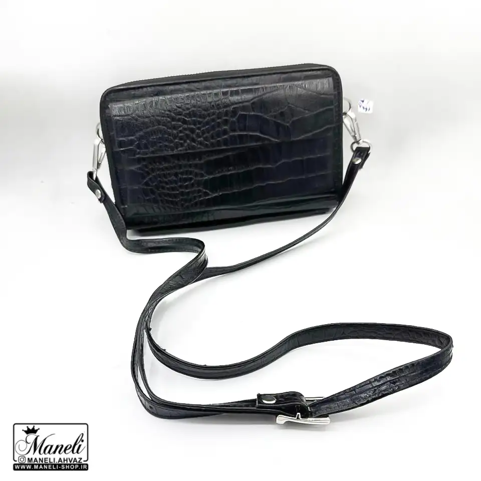 کیف دستی و دوشی چرم طبیعی طرح کروکدیلی مشکی