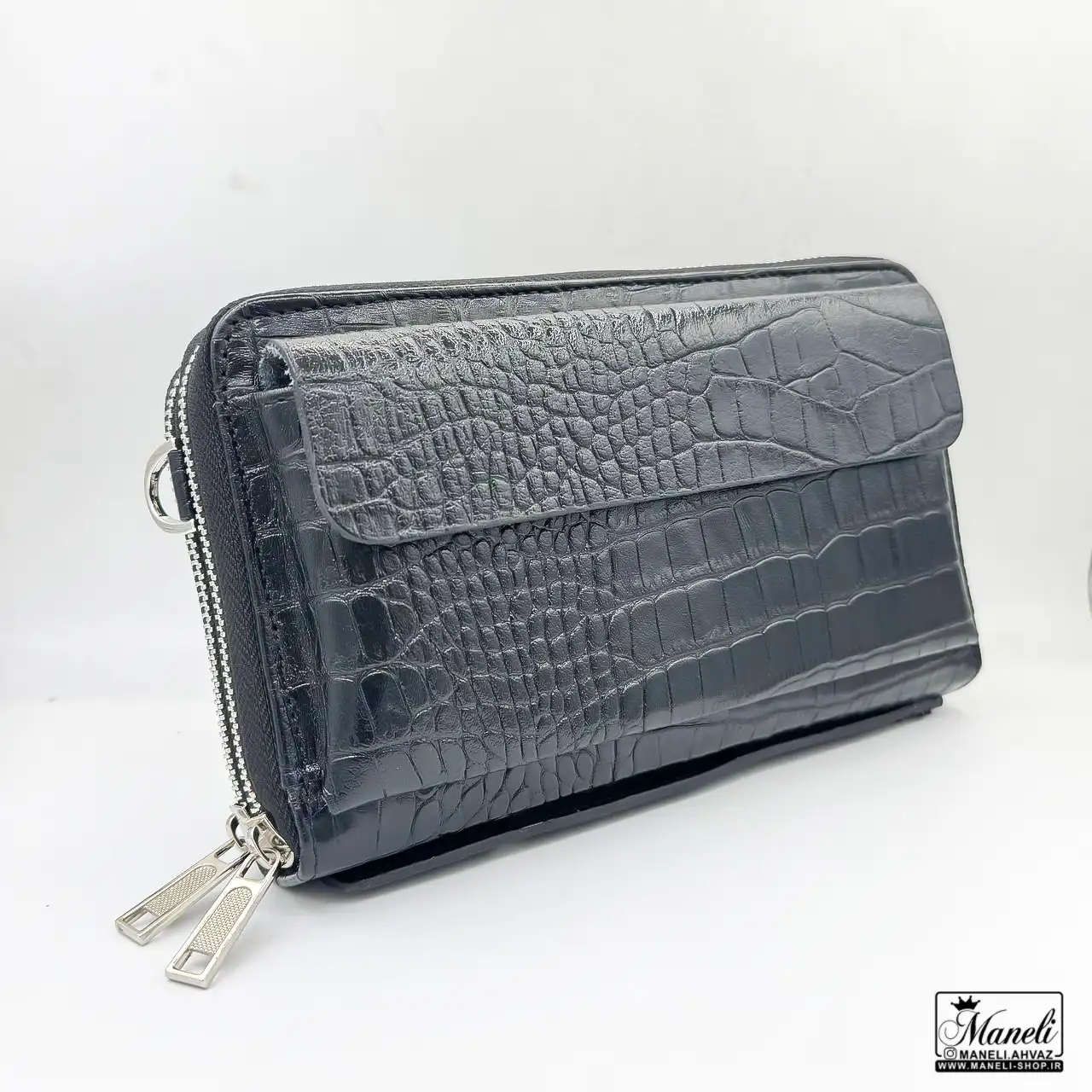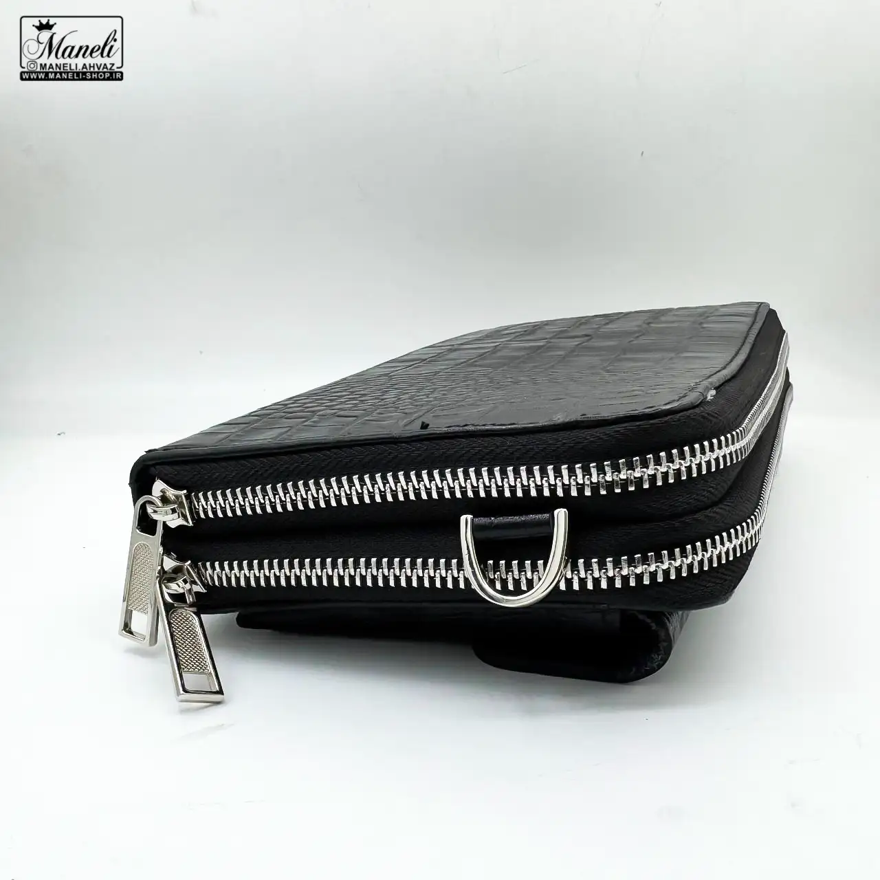 کیف دستی و دوشی چرم طبیعی طرح کروکدیلی مشکی: اوج ظرافت و کارایی