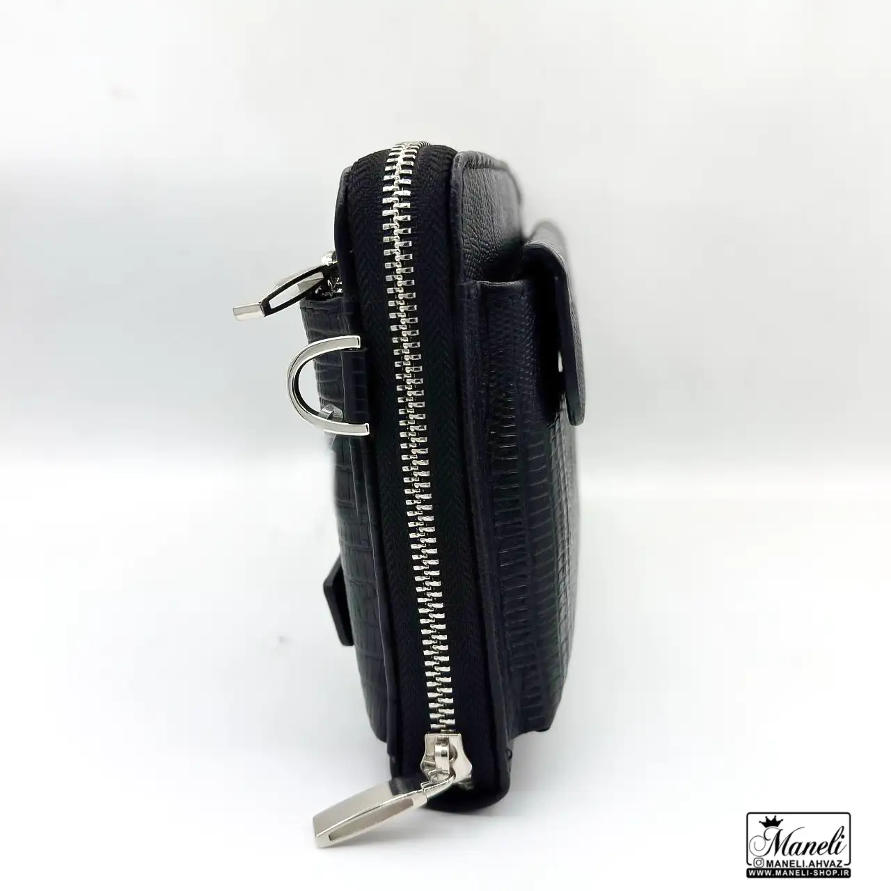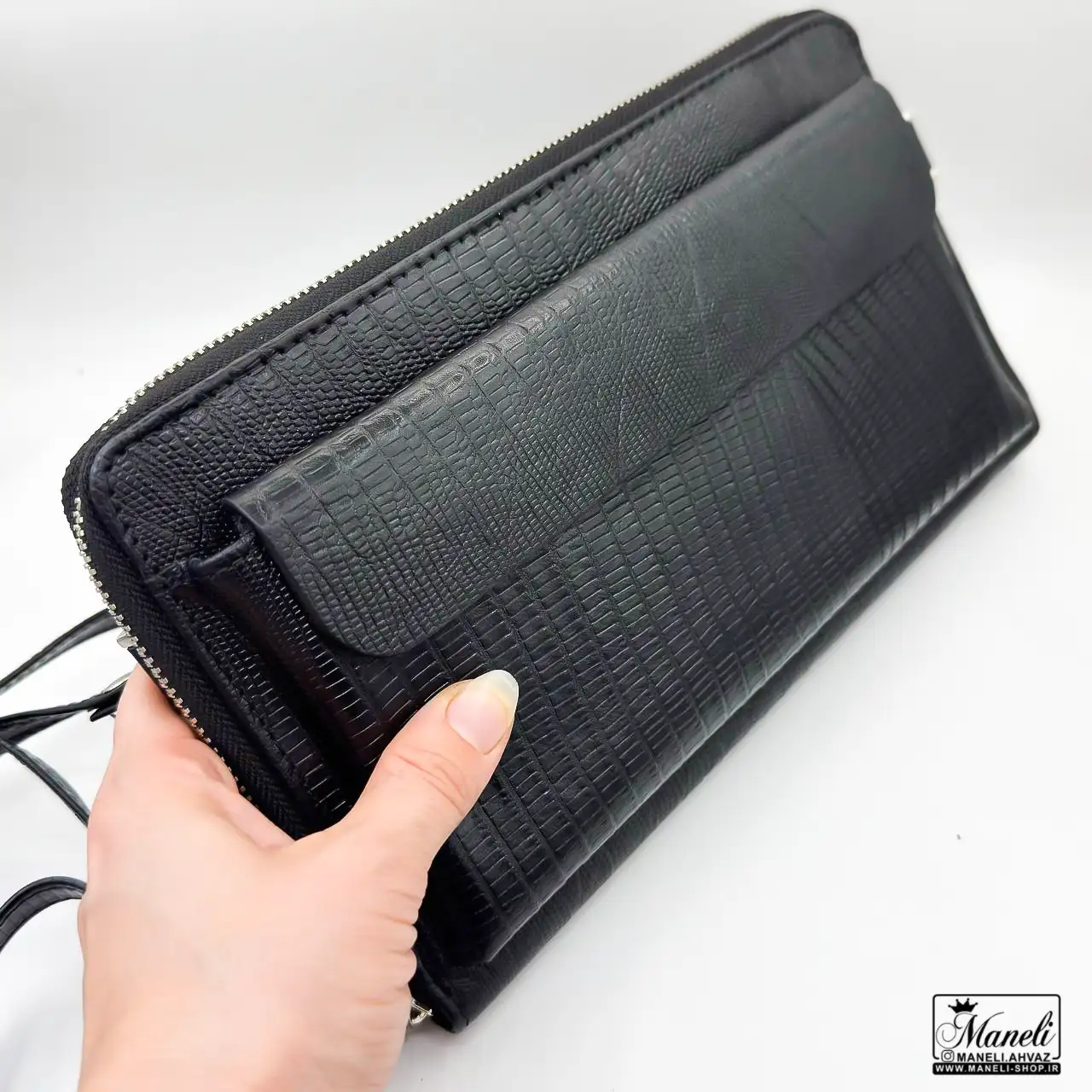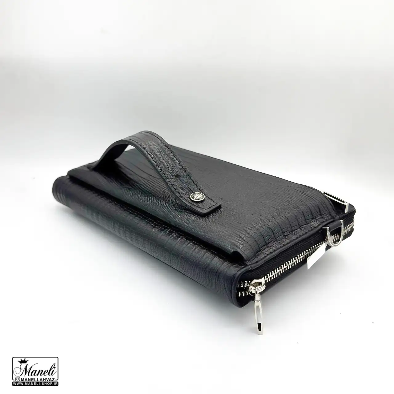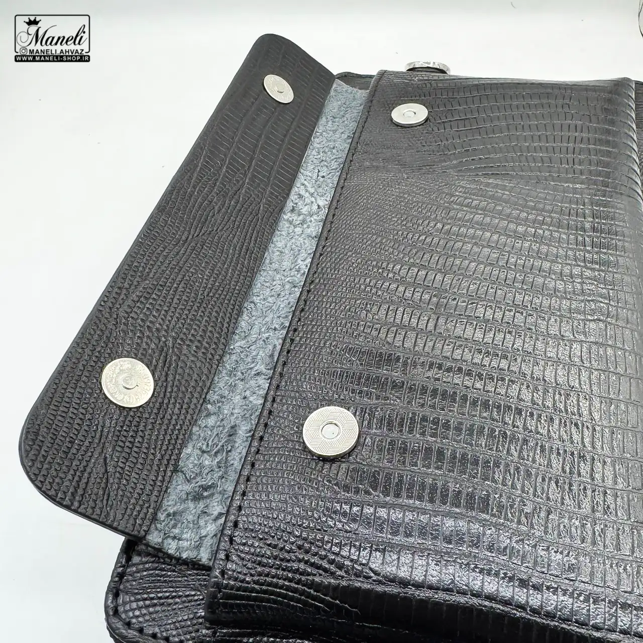 این کیف چرم طبیعی، نه تنها از مرغوب‌ترین چرم طبیعی ساخته شده، بلکه با بافتی برجسته و خیره‌کننده از طرح کروکودیل، جلوه‌ای خاص و متمایز به آن بخشیده است. حس لمس چرم اصیل و مشاهده طرح کروکودیلی، تجربه‌ای متفاوت و لوکس را به ارمغان می‌آورد. رنگ مشکی عمیق و کلاسیک آن، تضمین‌کننده همخوانی با هر نوع پوشش و مناسبتی است و استایلی جاودانه و بی‌زمان را برای شما به ارمغان می‌آورد.