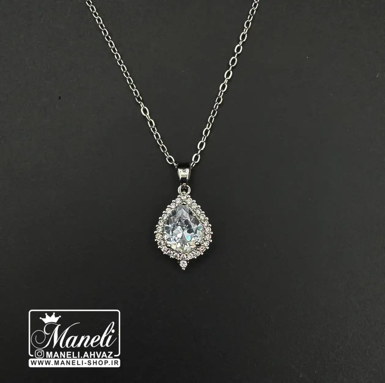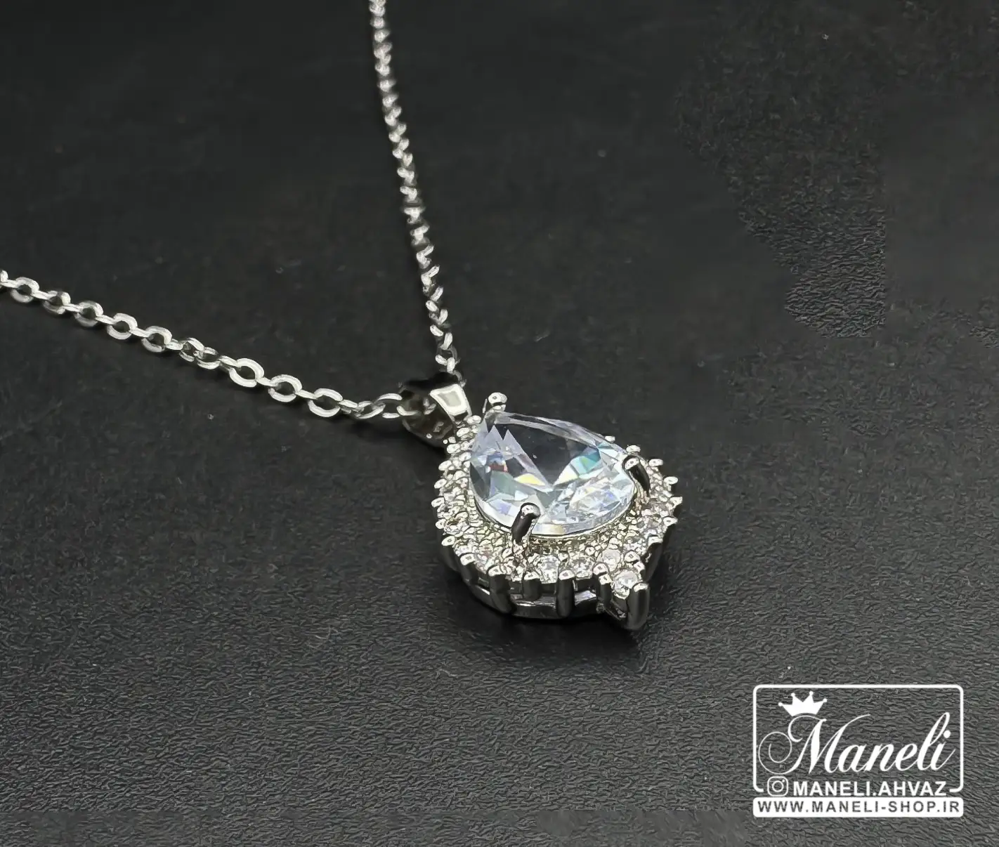 گردنبند اشکی نگین سفید نقرهای رنگ ثابت: جواهری بینظیر برای شما