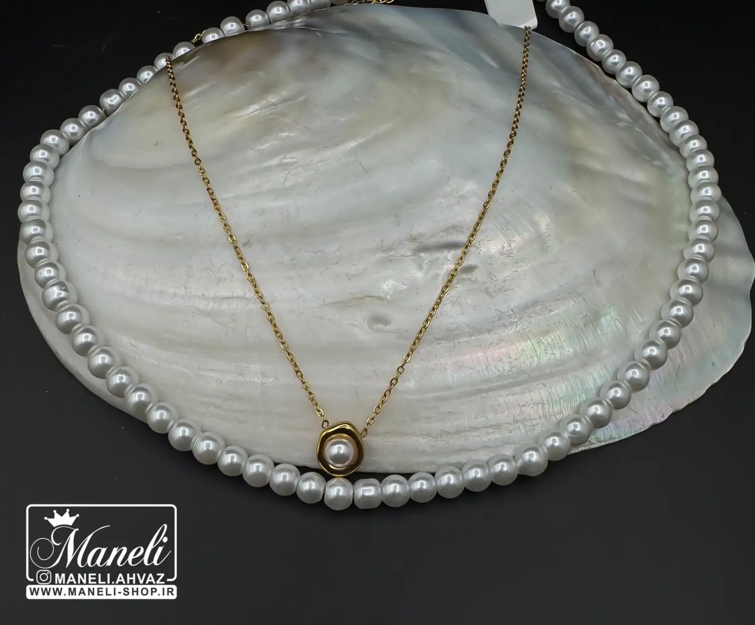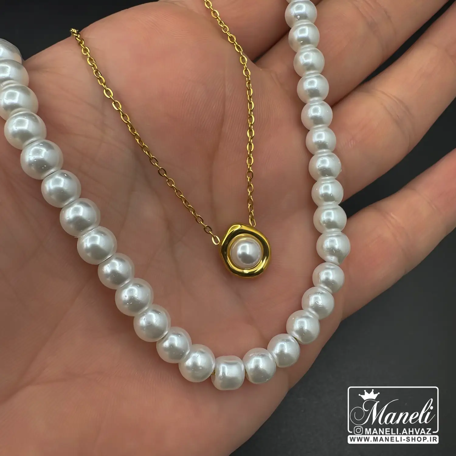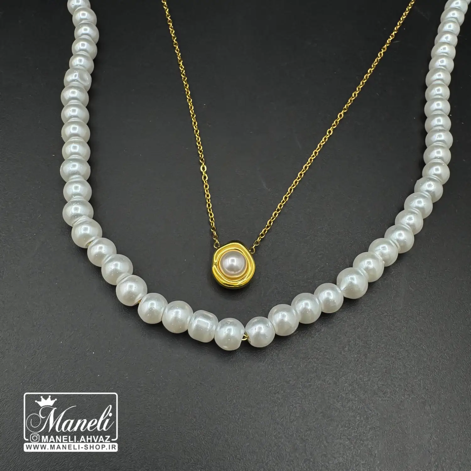 گردنبند دو لاین مرواریدی رنگ ثابت