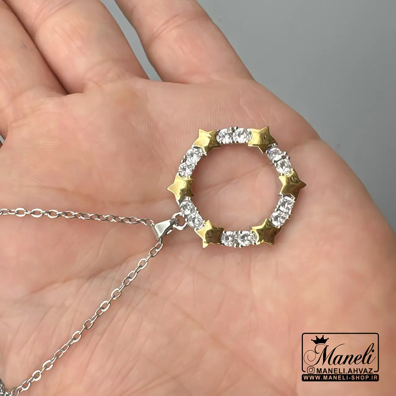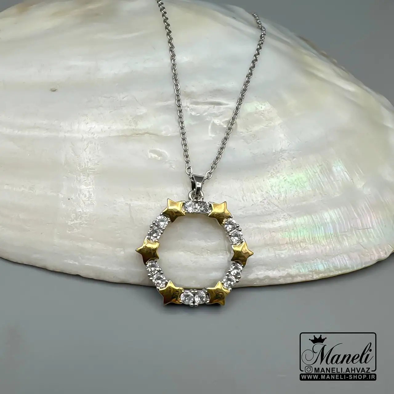 گردنبند زنانه تیفانی گرد نگین دار ستاره ای طلایی و سفید|140408125