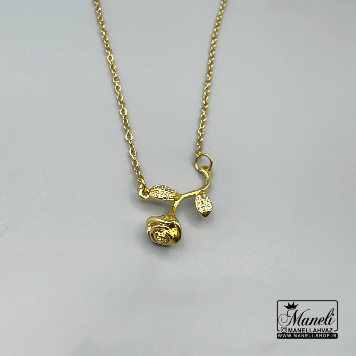 گردنبند طرح گل نگین دار طلایی رنگ ثابت|14040711