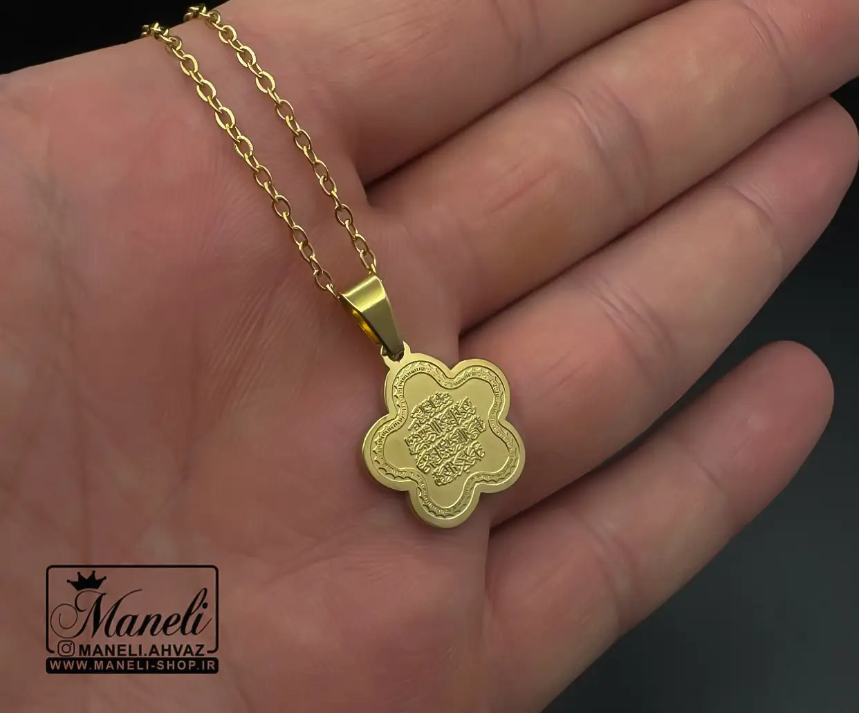 گردنبند طرح گل وان یکاد طلایی چشم زخم
