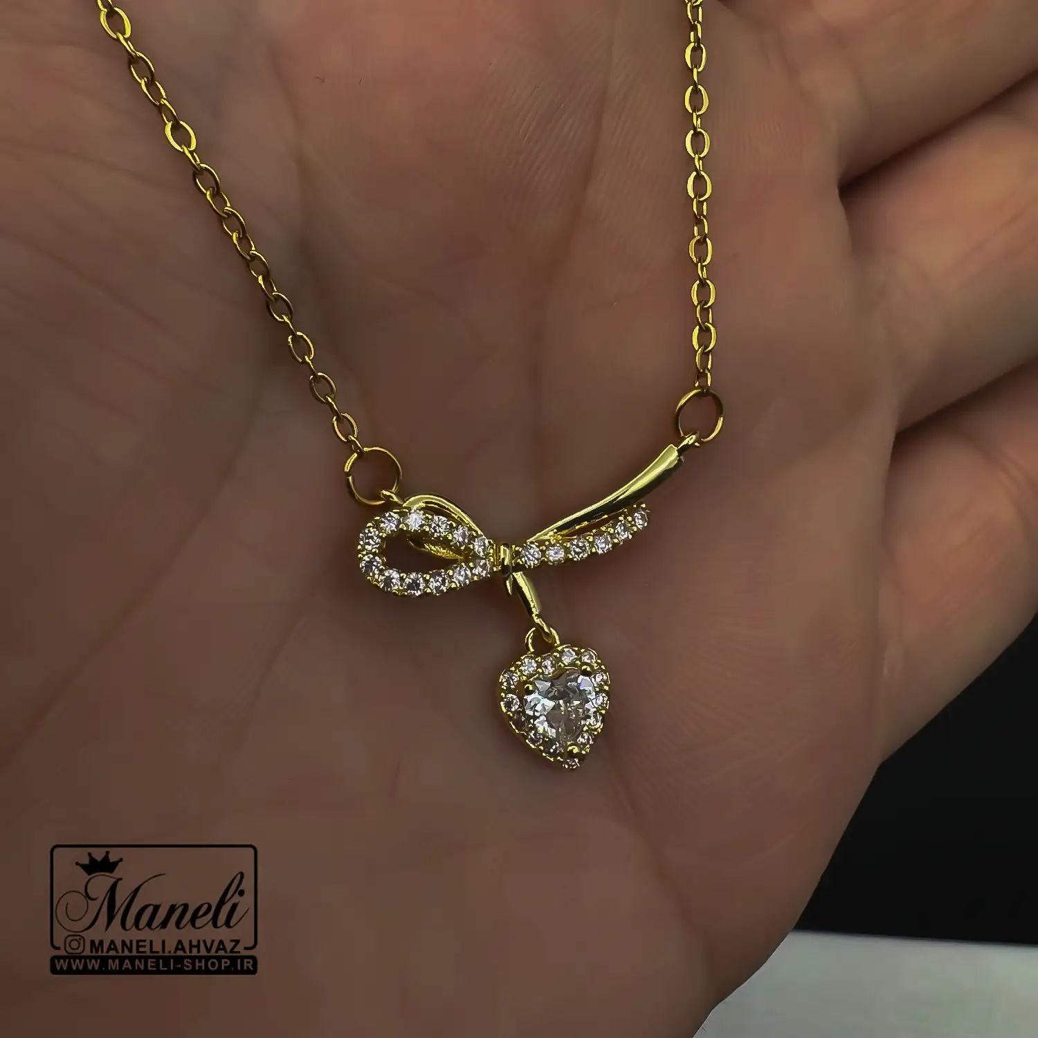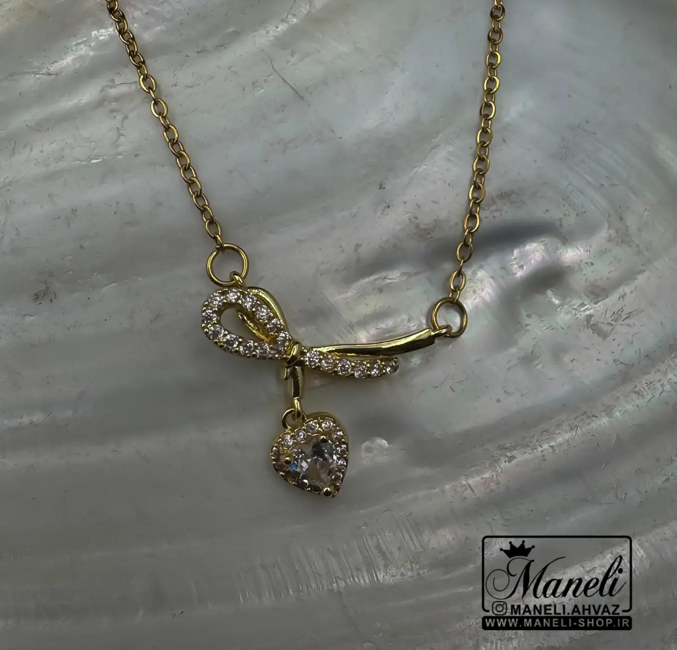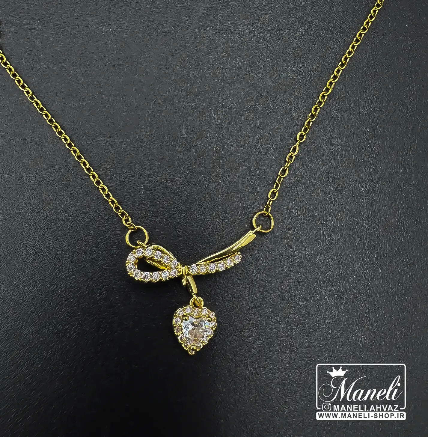 گردنبند قلبی با ترکیب پاپیون رنگ ثابت