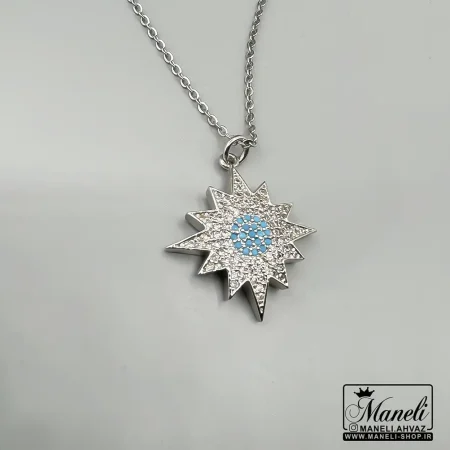 گردنبند نقره ای ستاره ای نگین مخراج شده استیل|14040844