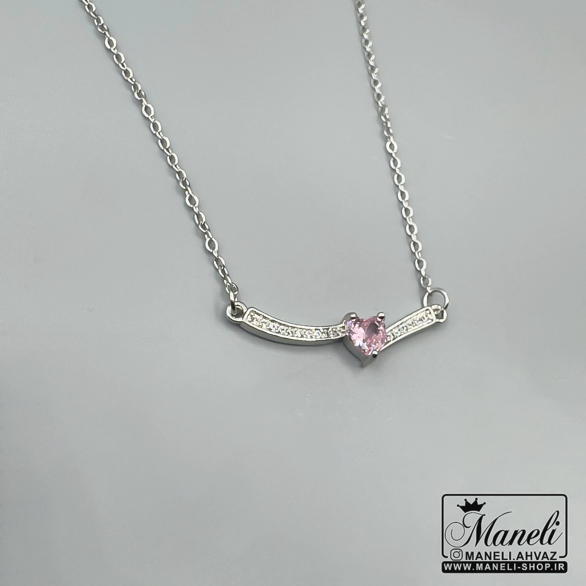 گردنبند نقره ای قلب صورتی نگین دار استیل: جادویی که قلب شما را لمس میکند
