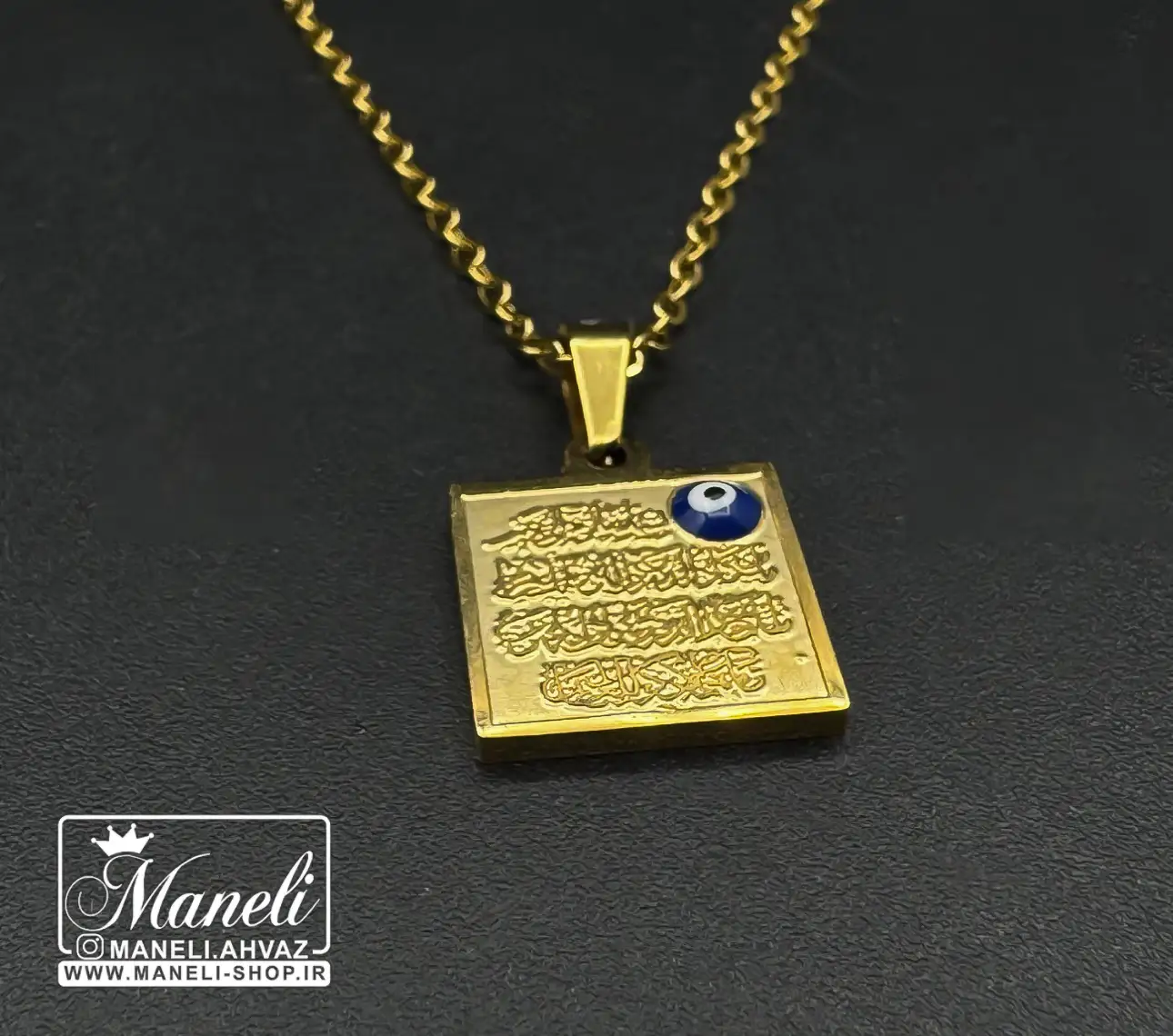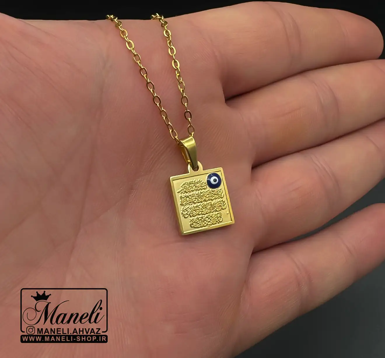 گردنبند وان یکاد طلایی با لوگو چشم نظر: جواهری با خاصیت معنوی و زیبایی شگفتانگیز
