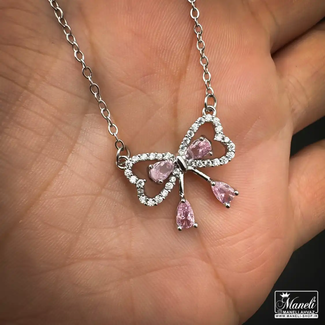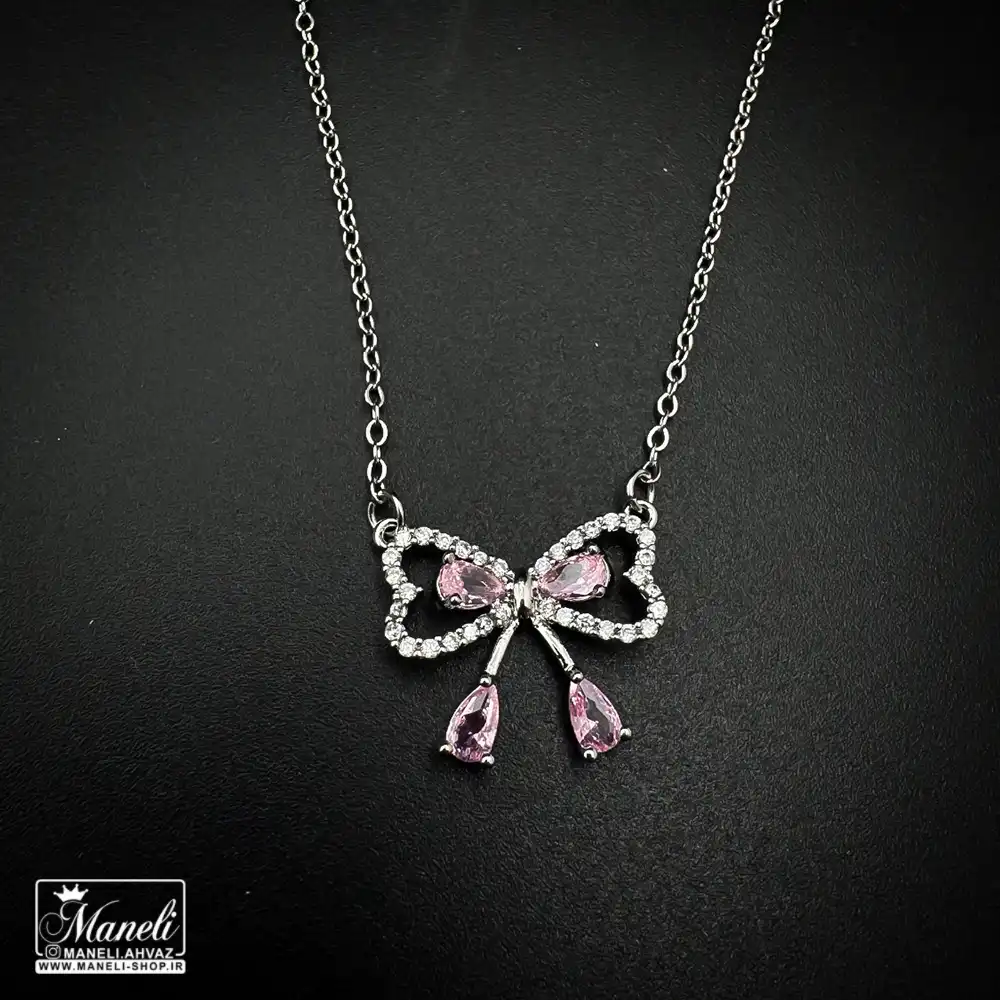 گردنبند پاپیون با نگین هفت رنگ | استیل