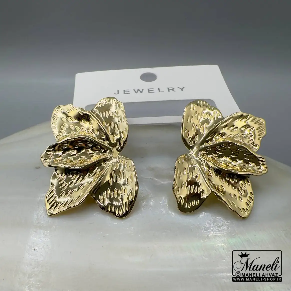 گوشواره ظریف طلایی طرح برگ گل میخی: درخششی ماندگار برای استایل بینظیر شما