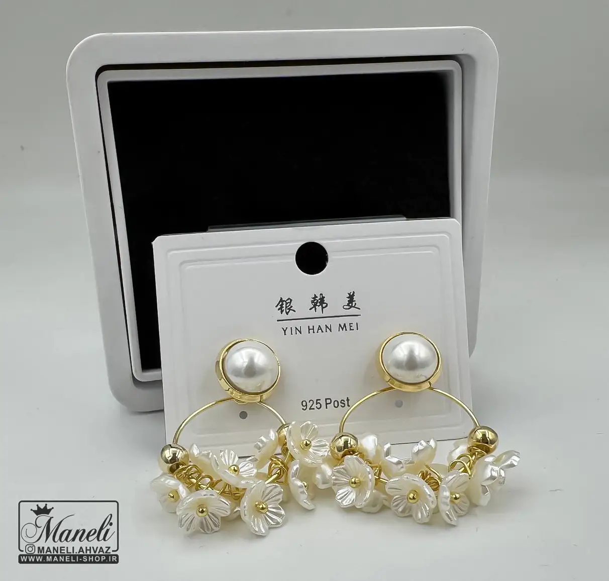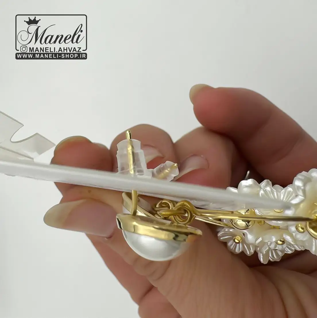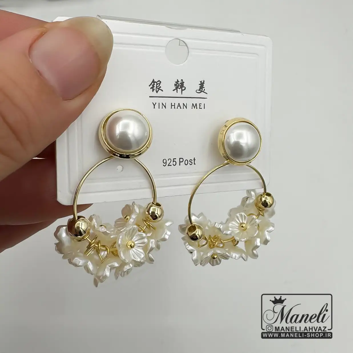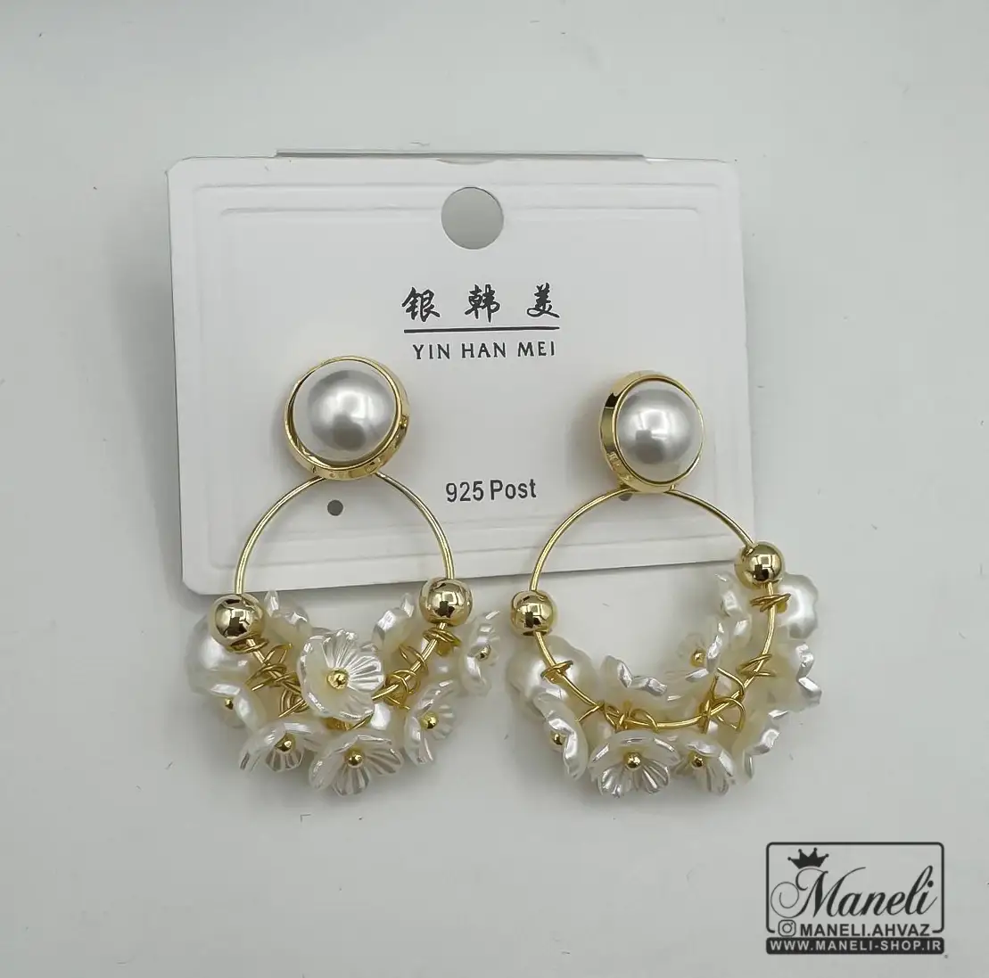 گوشواره طلایی و سفید با شکوفه های سفید|409819