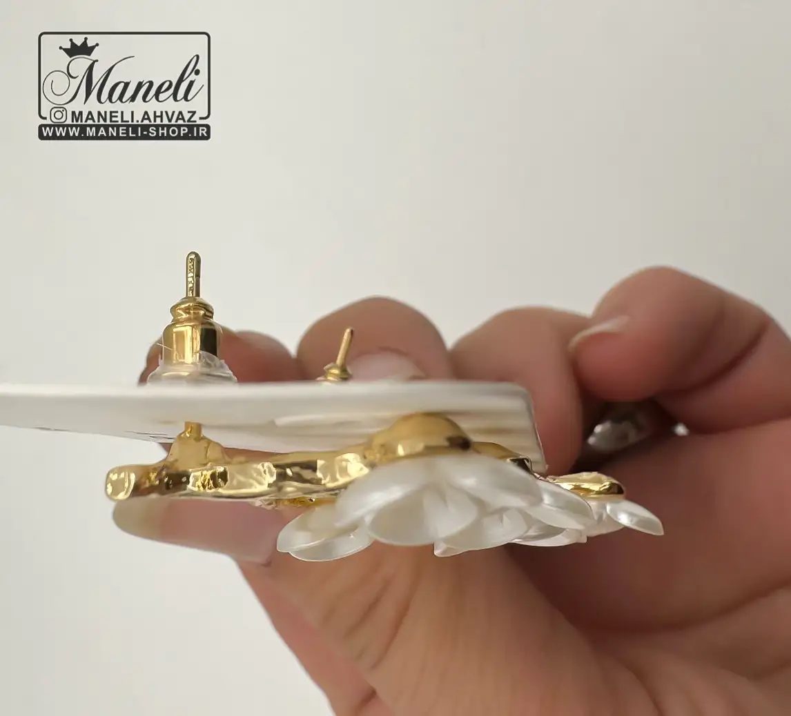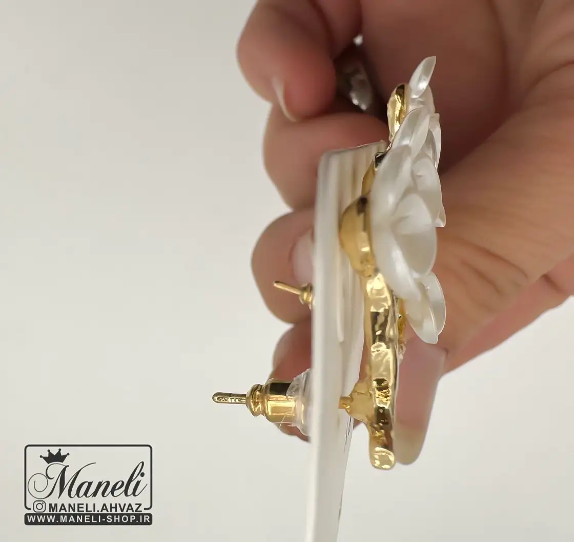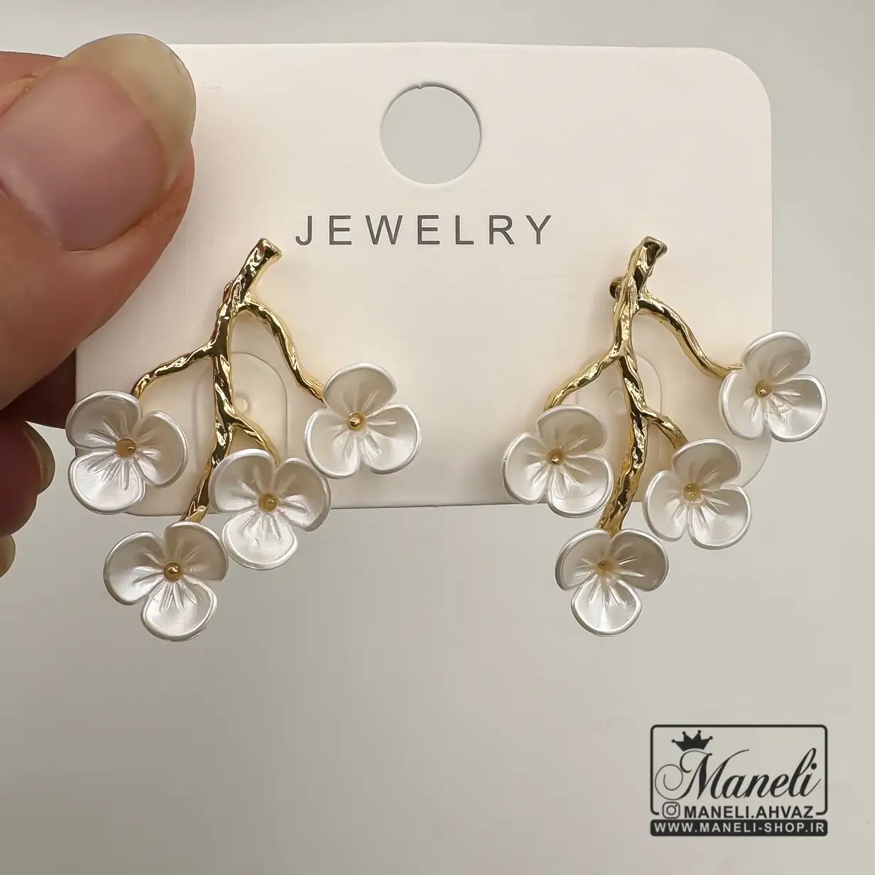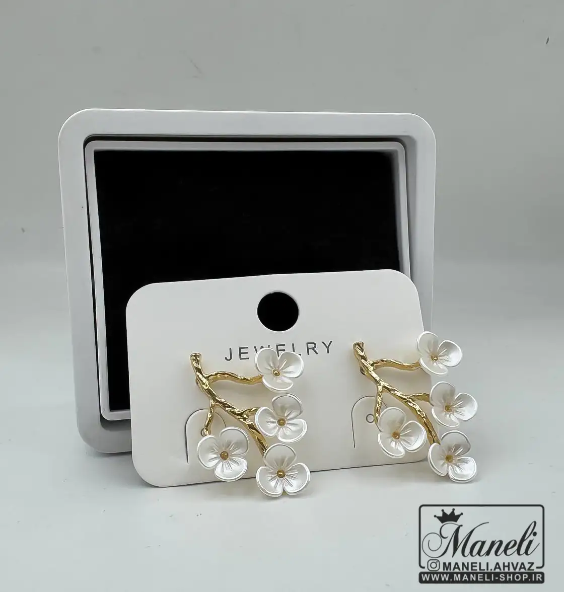 گوشواره طلایی و سفید با شکوفه های سفید|409819
