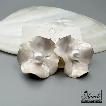 گوشواره گل سفید صدفی با مروارید اسپرت|14040643