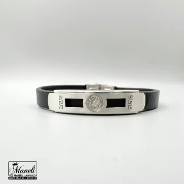 دستبند چرم مردانه با پلاک استیل ورساچه 14040505